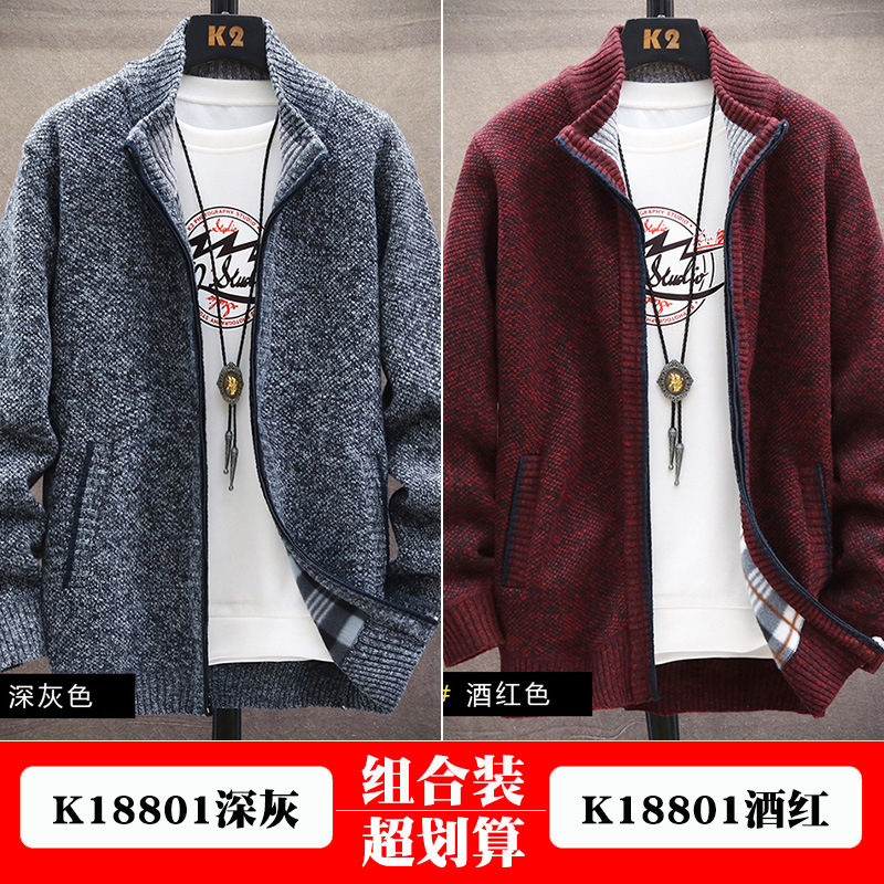 봄과 가을 새로운 스타일 칼라 재킷 유행 잘 생긴 캐주얼 카디건 스웨터 유행 브랜드 남성 니트 재킷스토어 가기