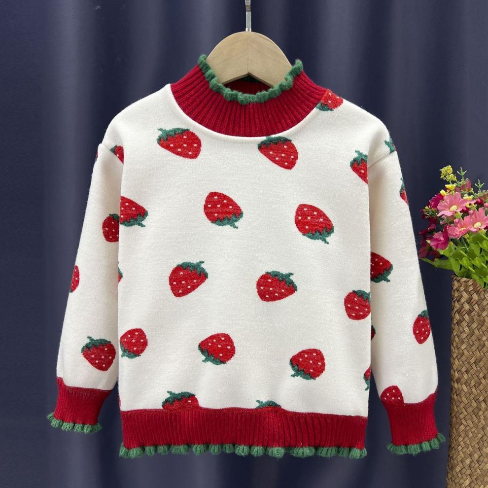 어린이 보토밍 셔츠 소녀 기모 두꺼운 스웨터 2024 가을과 겨울 새로운 어린이 아기 서양식 니트웨어스토어 가기