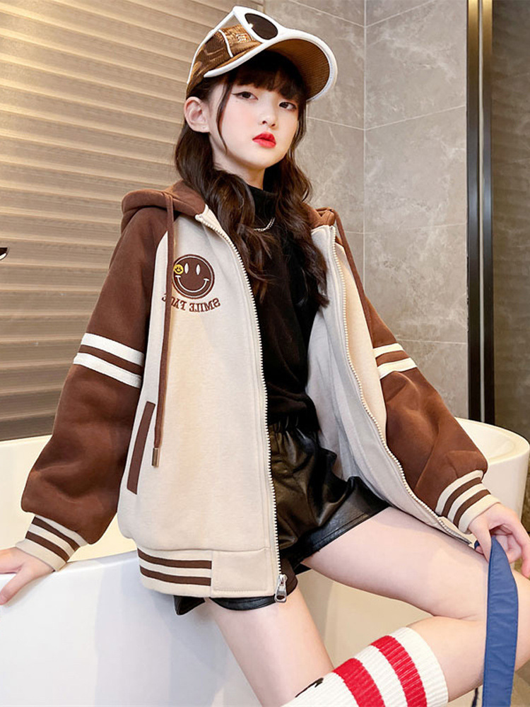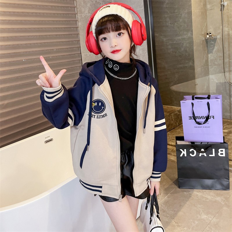 소녀 거리 튀김 후드 자켓 봄과 가을 2024 새로운 한국 스타일 유행 야구 세트 대형 어린이 자켓 탑스토어 가기
