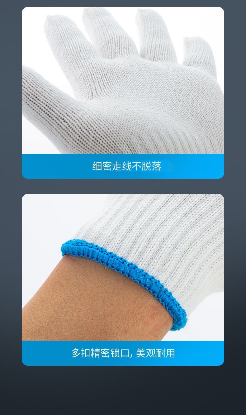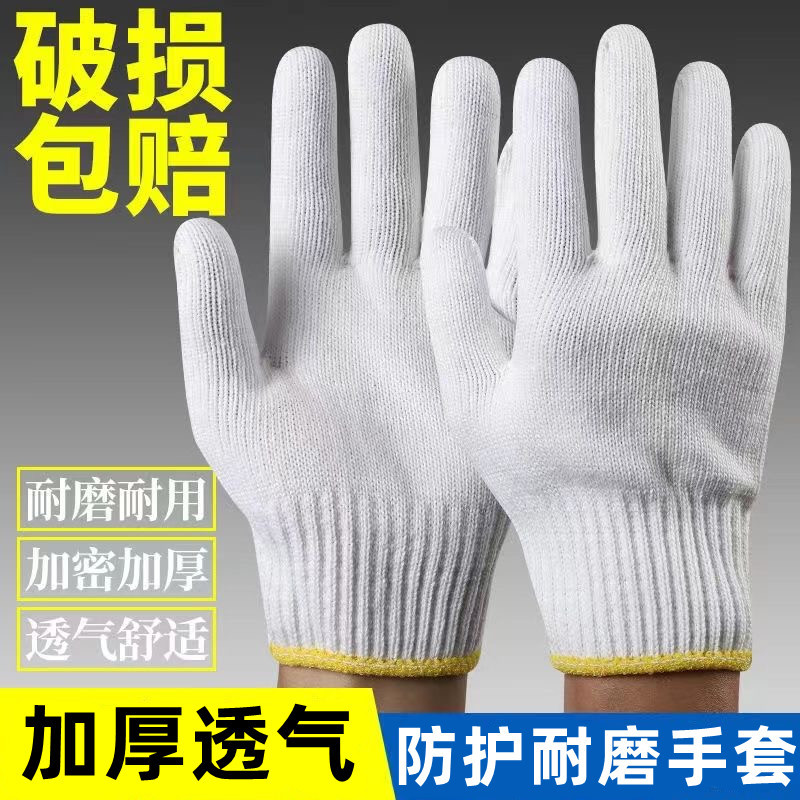 노동 보호를위한 내마모성 및 내구성있는 코튼 나일론 화이트 장갑 미끄럼 방지 사이트 유지 보수 코튼 장갑 정사이즈스토어 가기