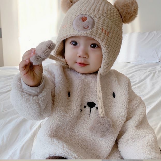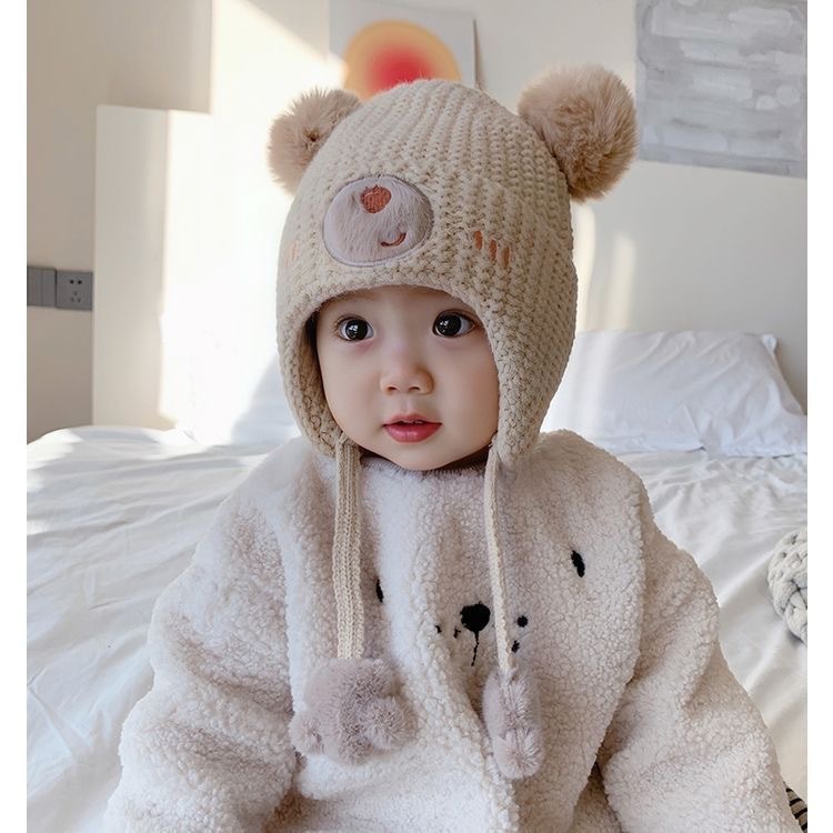 아기 모자 가을과 겨울 남자와 여자의 귀여운 아이들의 양모 모자 아기 모자 겨울 귀 보호 면 모자 방풍 소년스토어 가기
