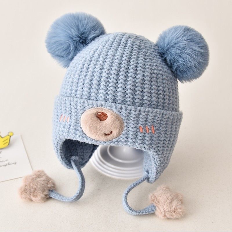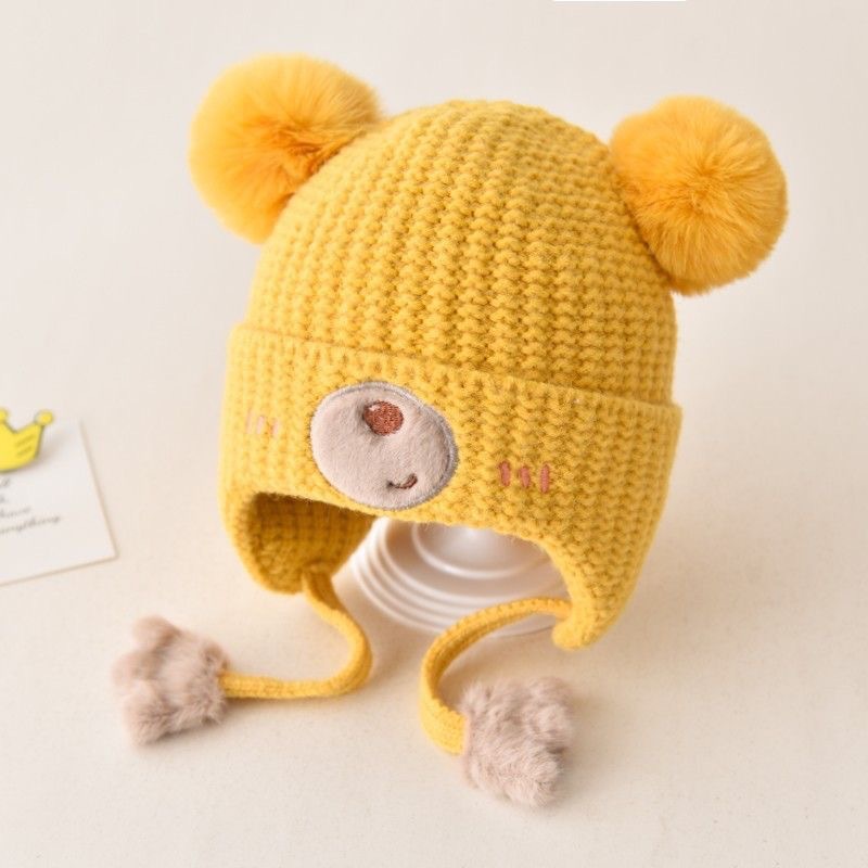 아기 모자 가을과 겨울 남자와 여자의 귀여운 아이들의 양모 모자 아기 모자 겨울 귀 보호 면 모자 방풍 소년