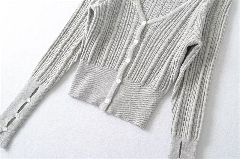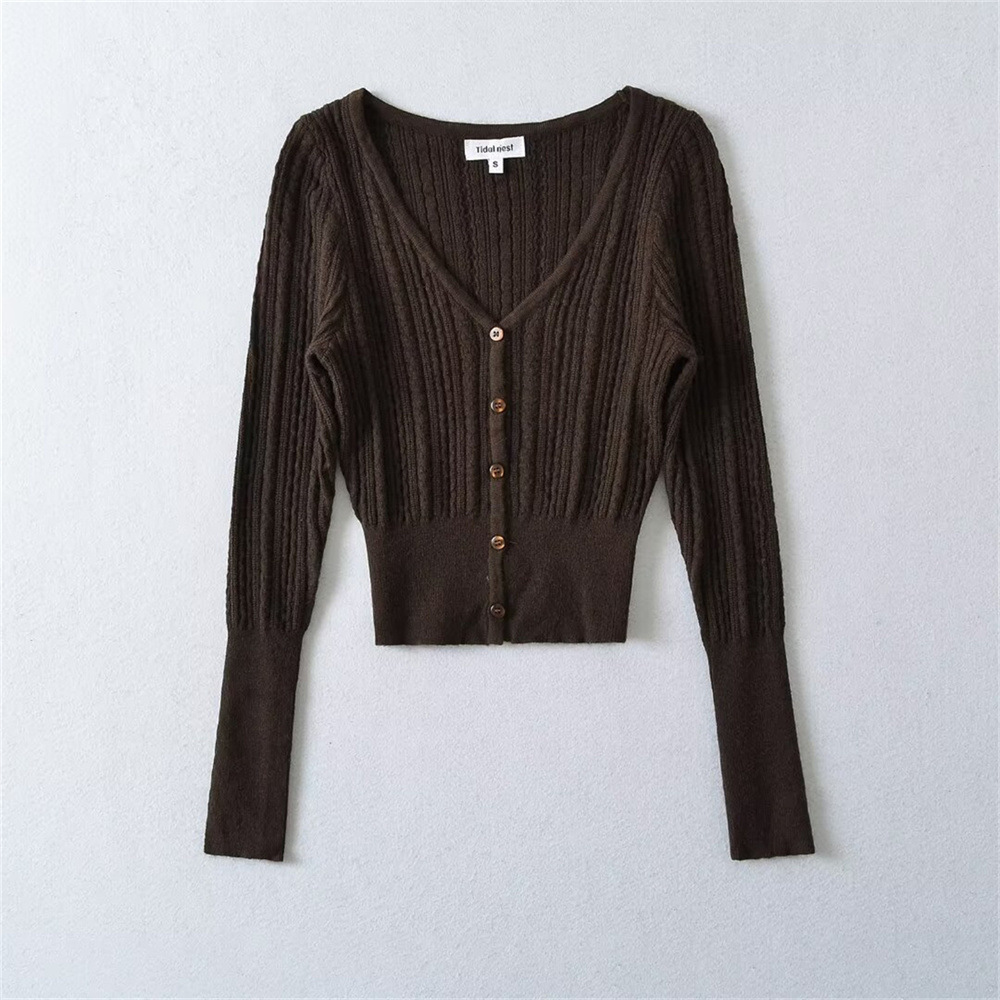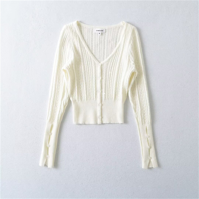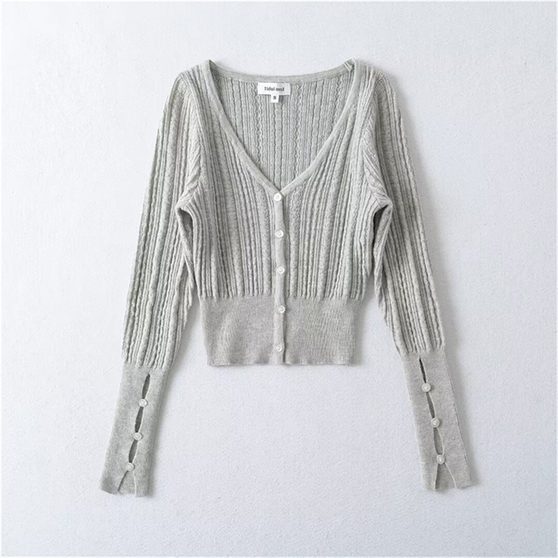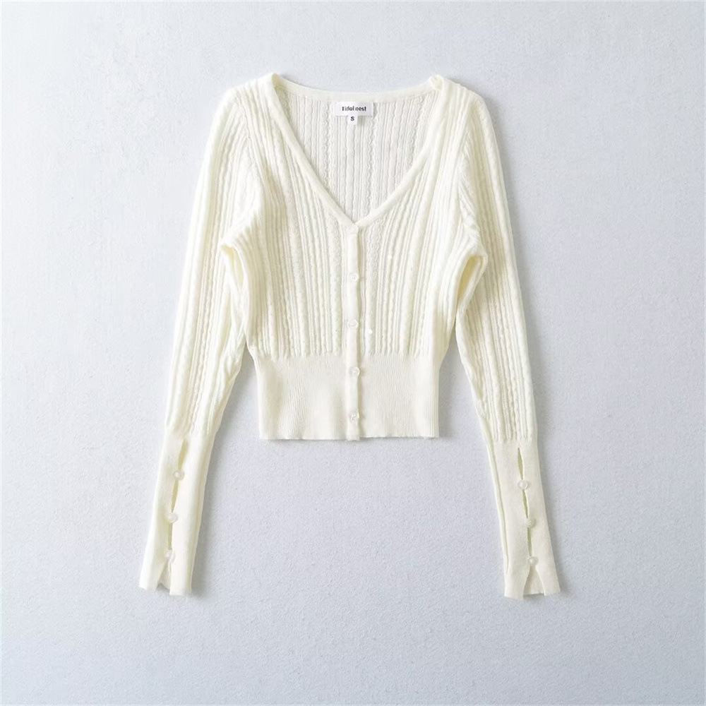 프렌치 스타일 젠틀 V-넥 싱글 브레스트 버튼 할로우 아웃 슬림 핏 슬림 핏 스웨터 여성용 이너 쇼트 카디건 탑