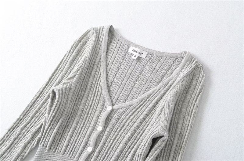 프렌치 스타일 젠틀 V-넥 싱글 브레스트 버튼 할로우 아웃 슬림 핏 슬림 핏 스웨터 여성용 이너 쇼트 카디건 탑스토어 가기