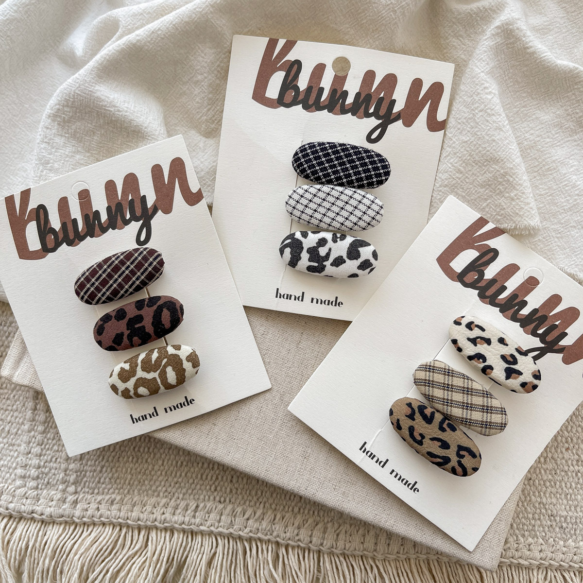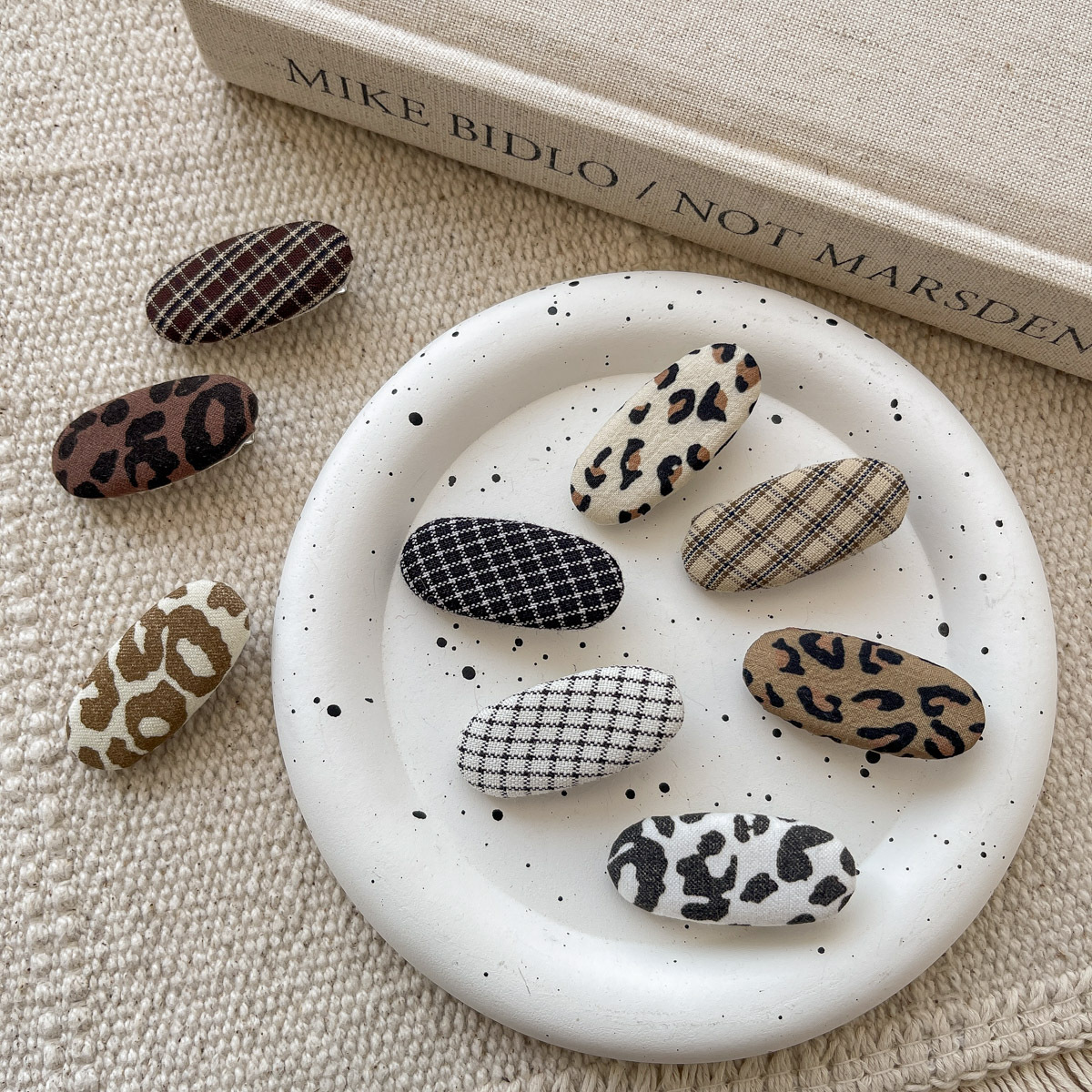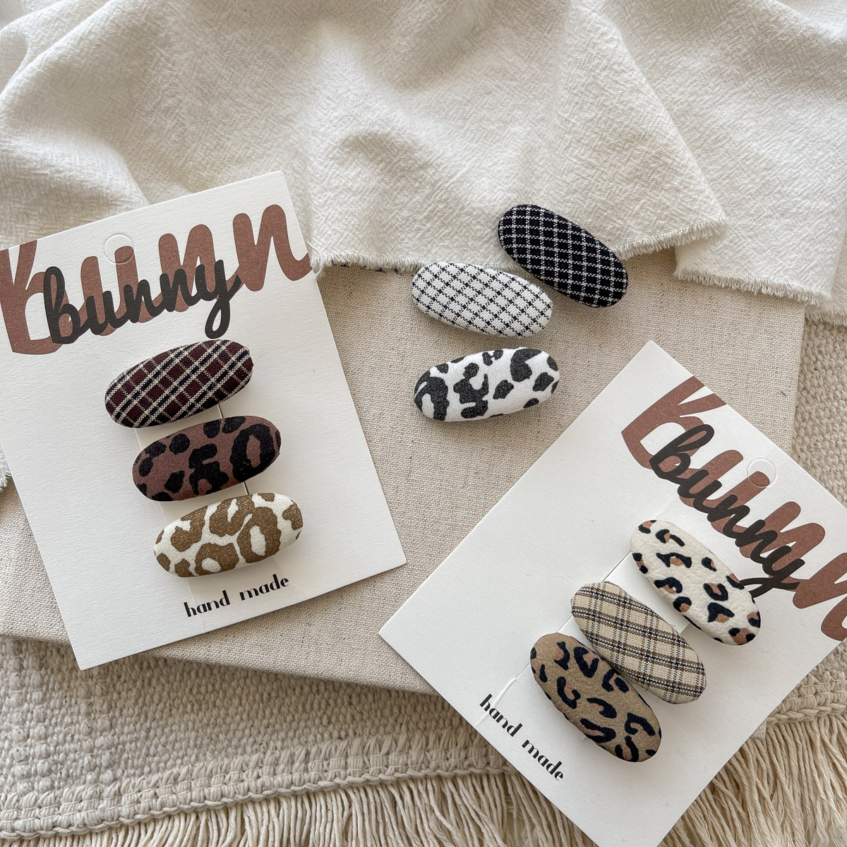 새로운 올매치 패브릭 격자 무늬 레오파드 무늬 어린이 헤어핀 한국식 달콤한 올매치 어린 소녀의 부러진 헤어 액세서리