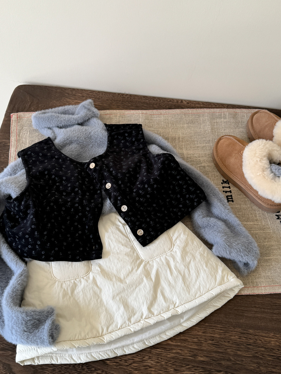 유유 공주 소녀 기모 코듀로이 짧은 작은 조끼 어린이 일본 스타일 빈티지 꽃 조끼 앞과 뒤