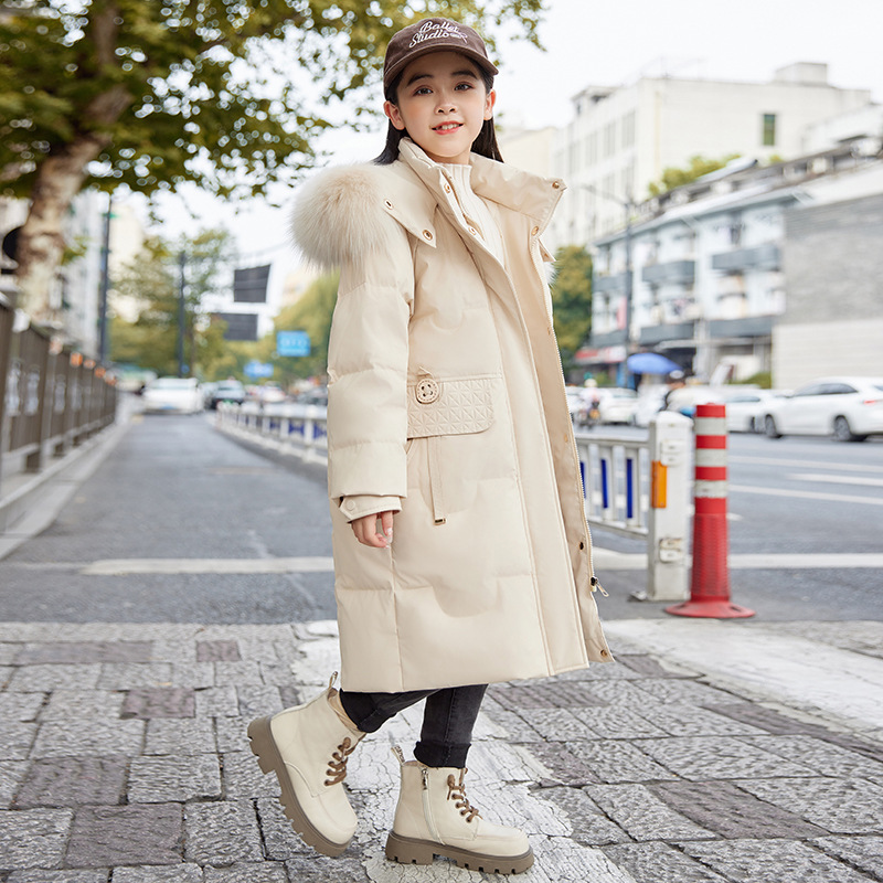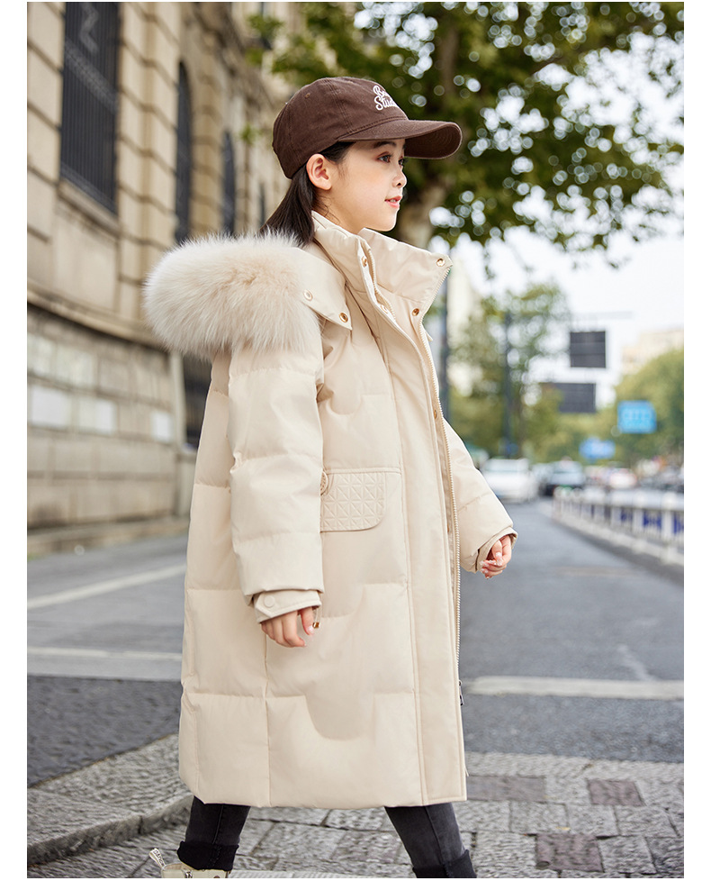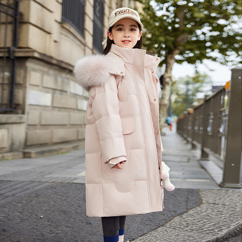 2024 새로운 어린이 다운 재킷 대형 어린이 두꺼운 따뜻한 서양식 흰색 오리 다운 소녀의 유행 큰 울 칼라 재킷