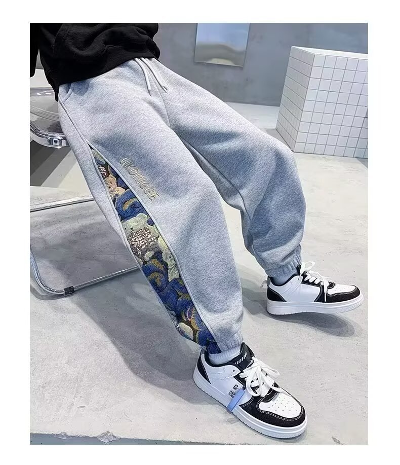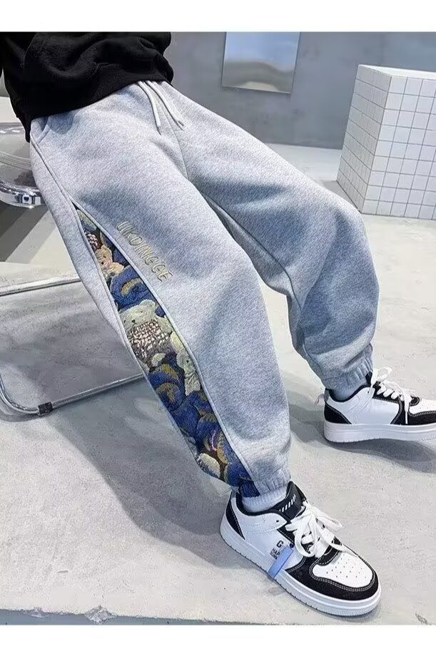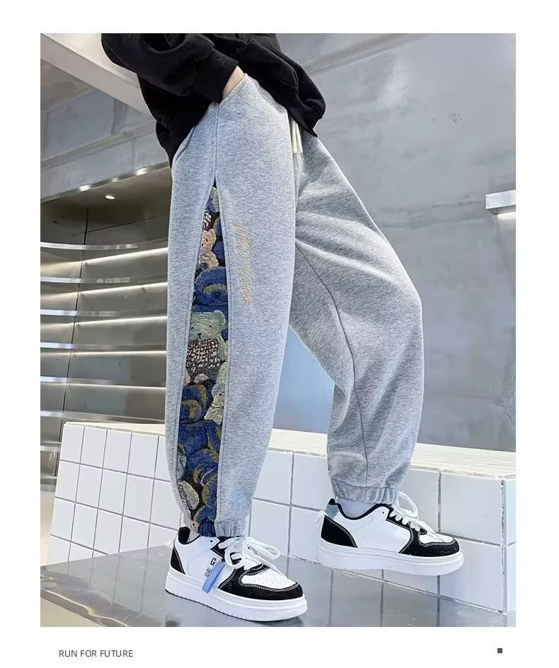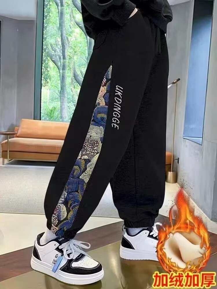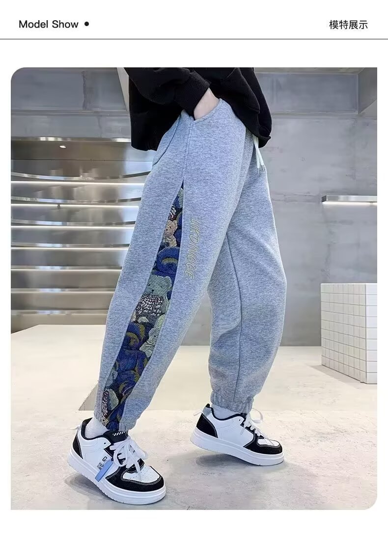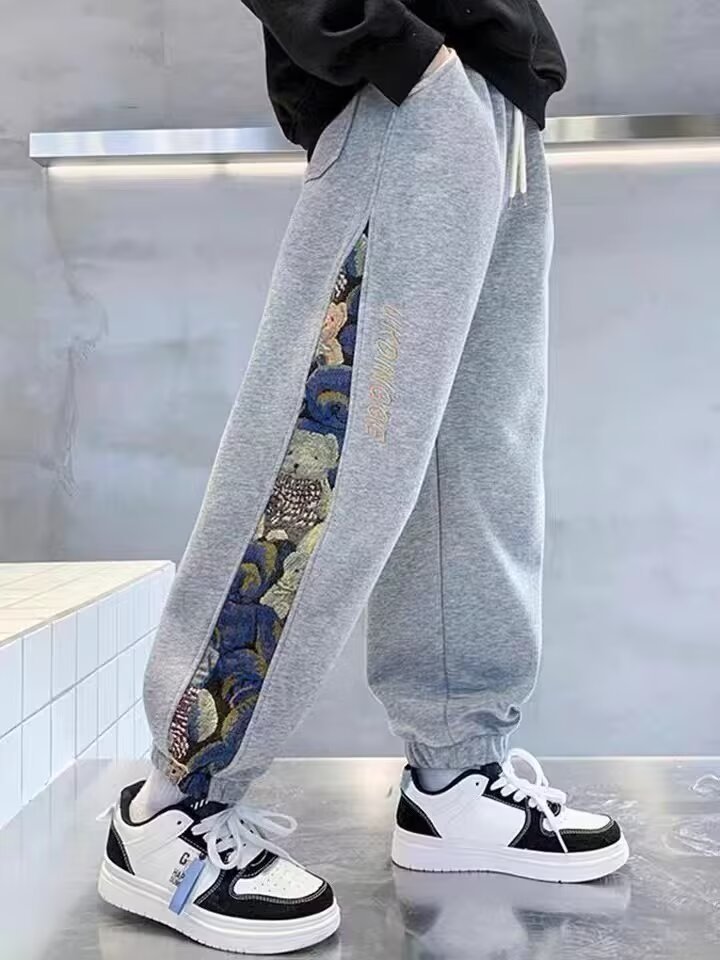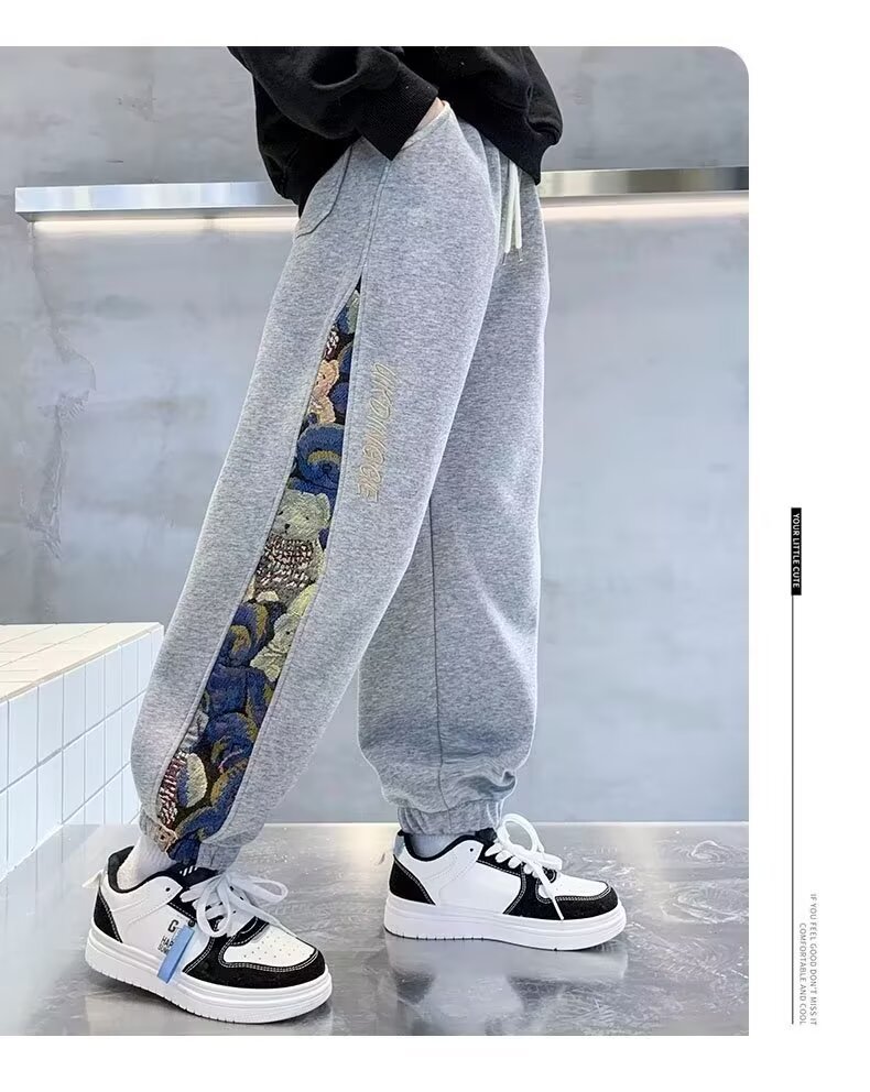 소년 가을 착용 스포츠 바지 2024 새로운 어린이 바지 봄 가을 겨울 기모 운동복