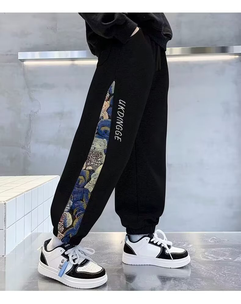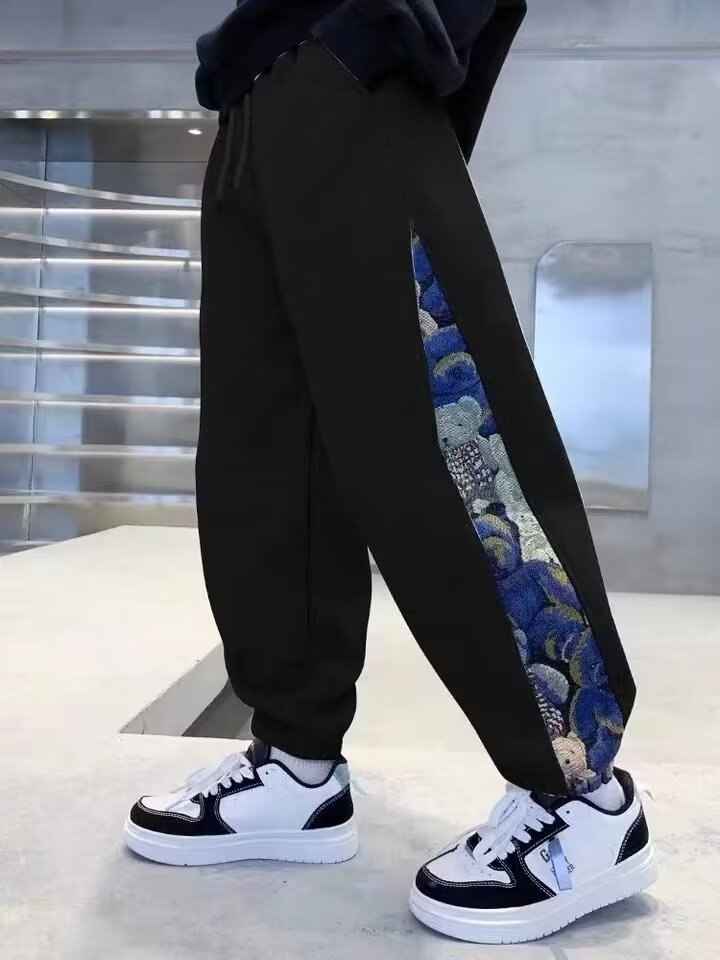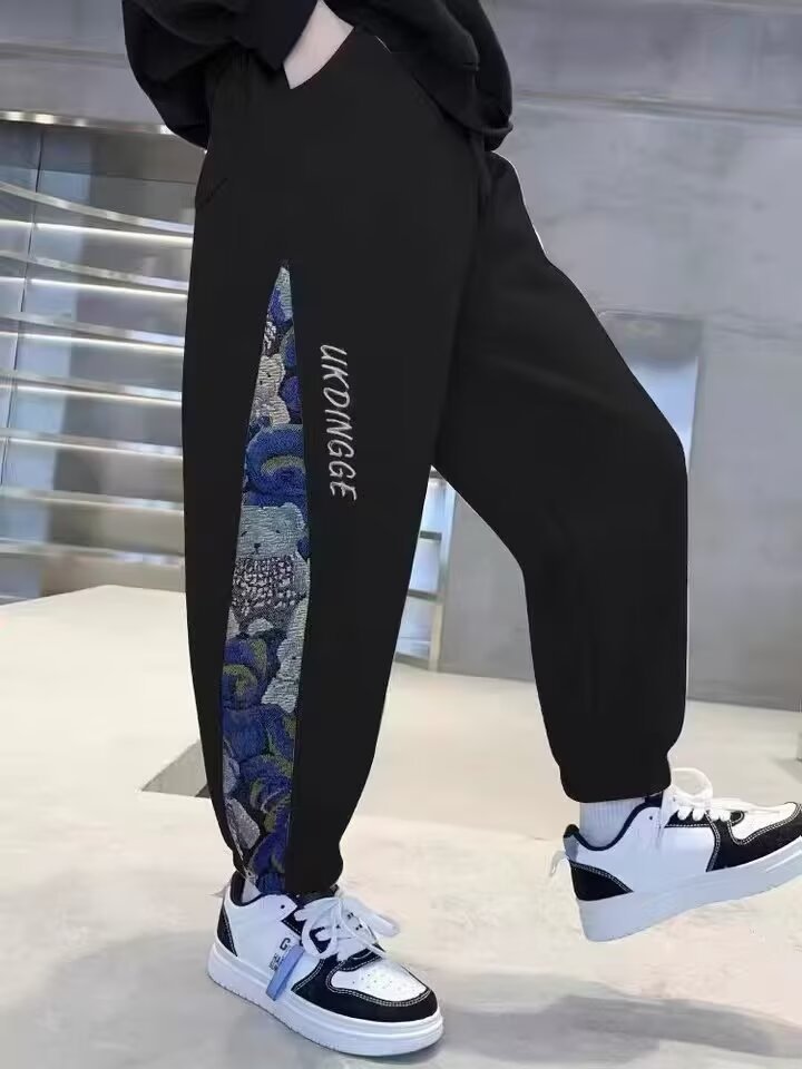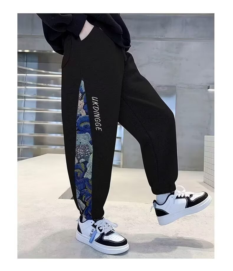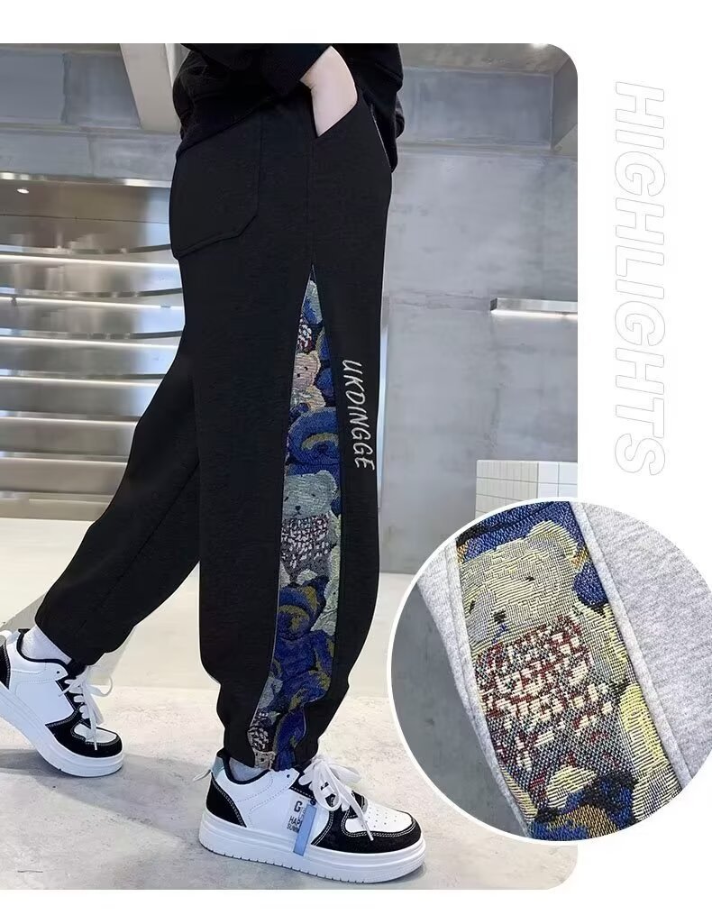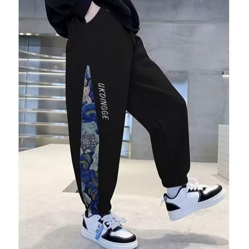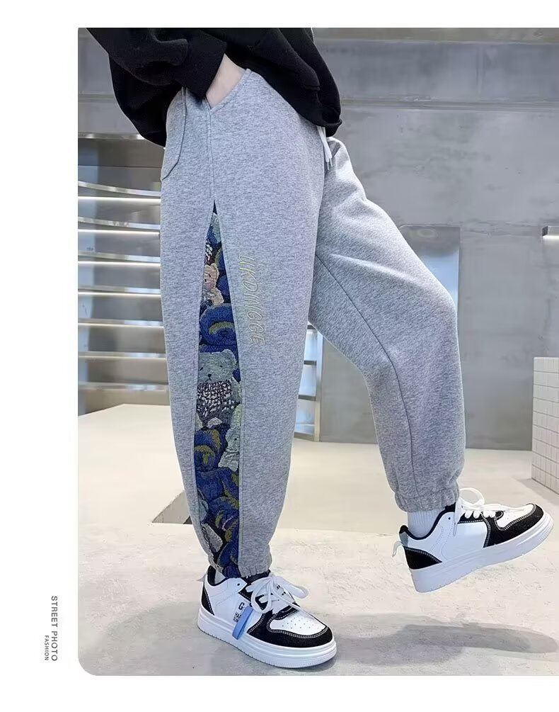 소년 가을 착용 스포츠 바지 2024 새로운 어린이 바지 봄 가을 겨울 기모 운동복