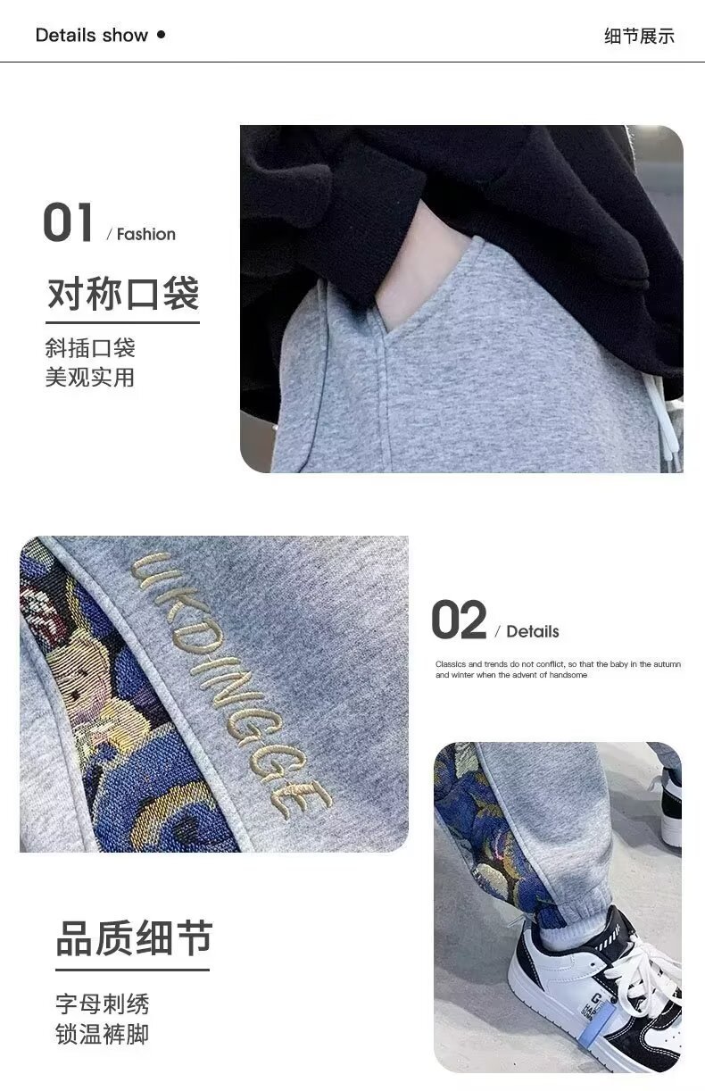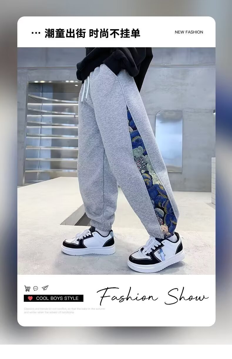 소년 가을 착용 스포츠 바지 2024 새로운 어린이 바지 봄 가을 겨울 기모 운동복스토어 가기