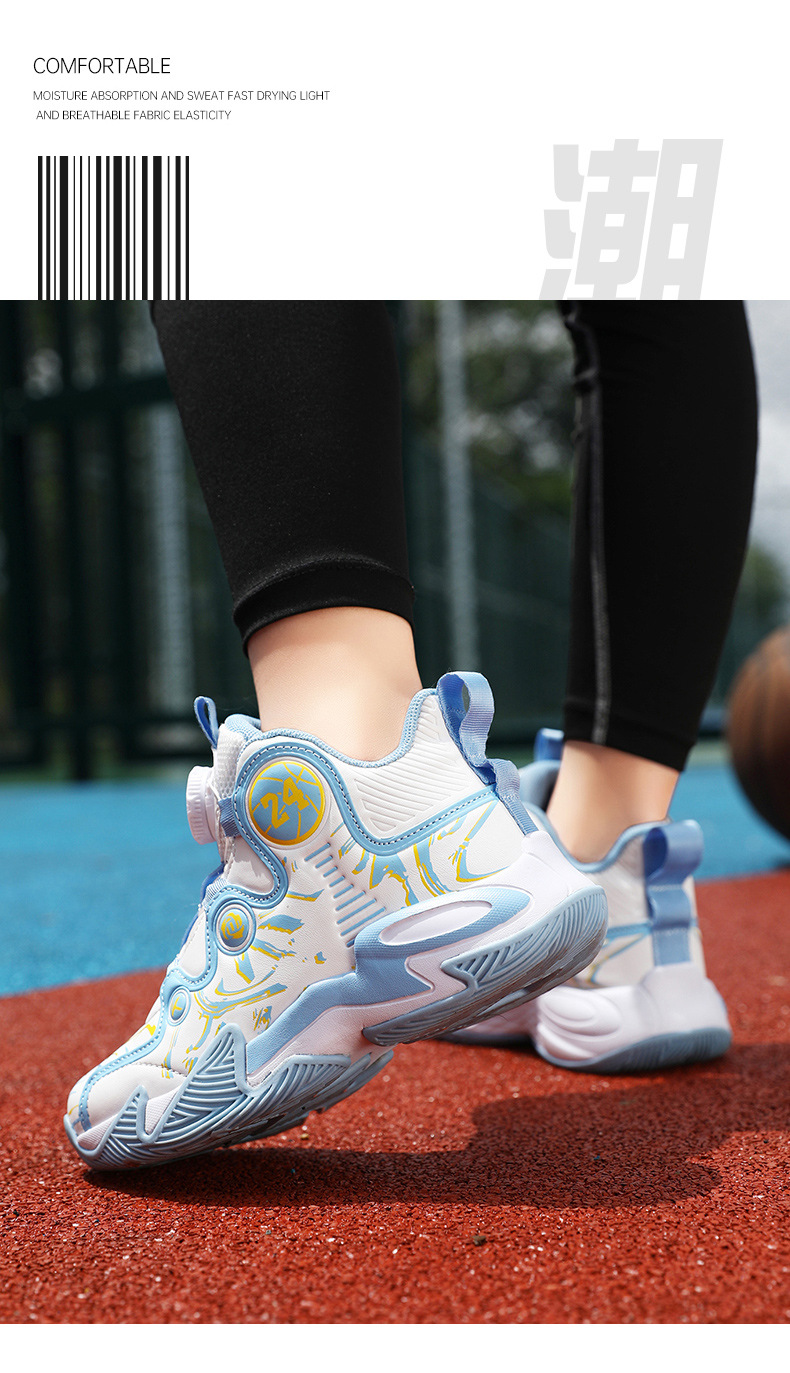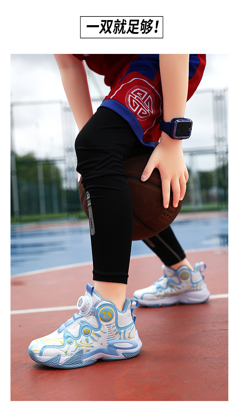 어린이 캐주얼 스포츠 러닝화 겨울 새 기모 두 면 농구 신발 중 큰 어린이 회전 버클 가죽 미끄럼 방지