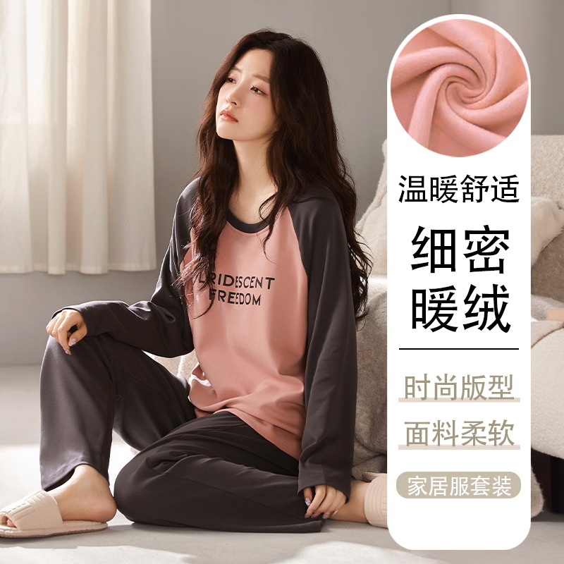 독일 벨벳 따뜻한 내한성 잠옷 여성용 긴팔 바지 가을과 겨울 새로운 얇은 벨벳 캐주얼 패션 트렌드 홈 의류 세트스토어 가기