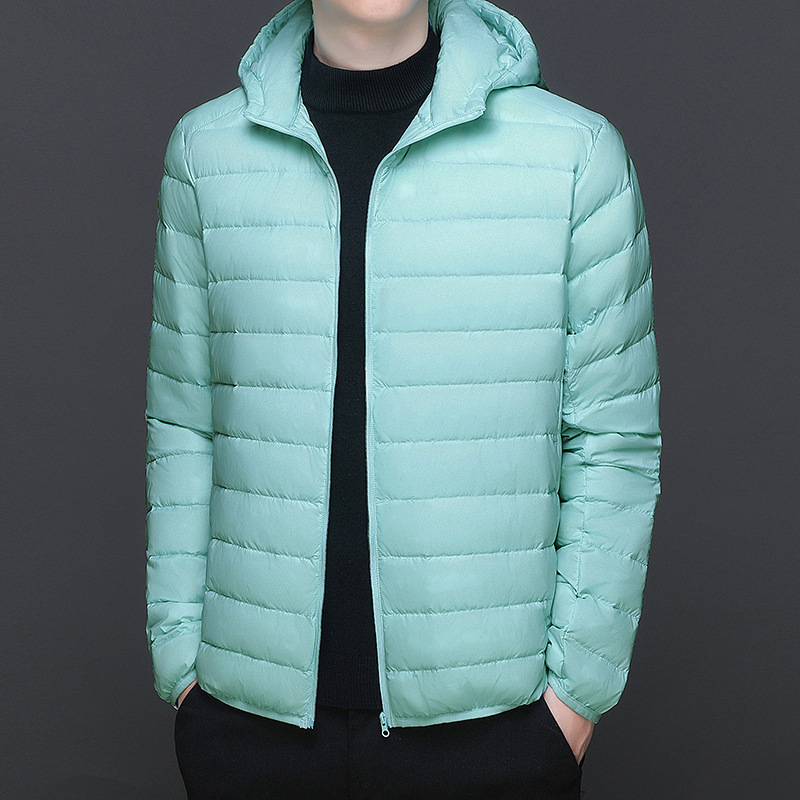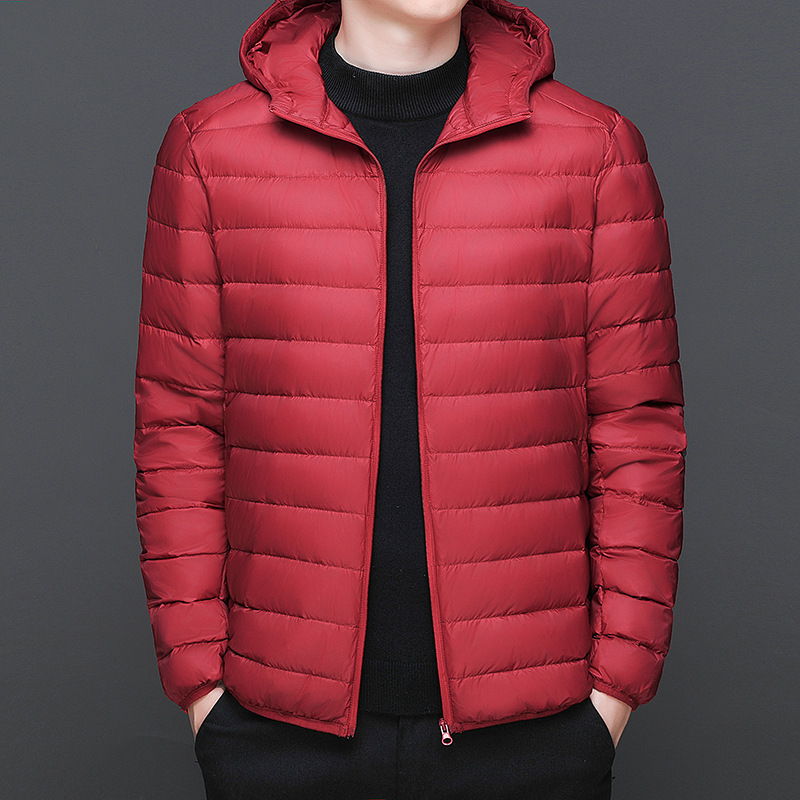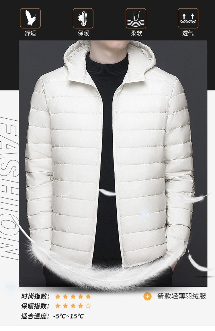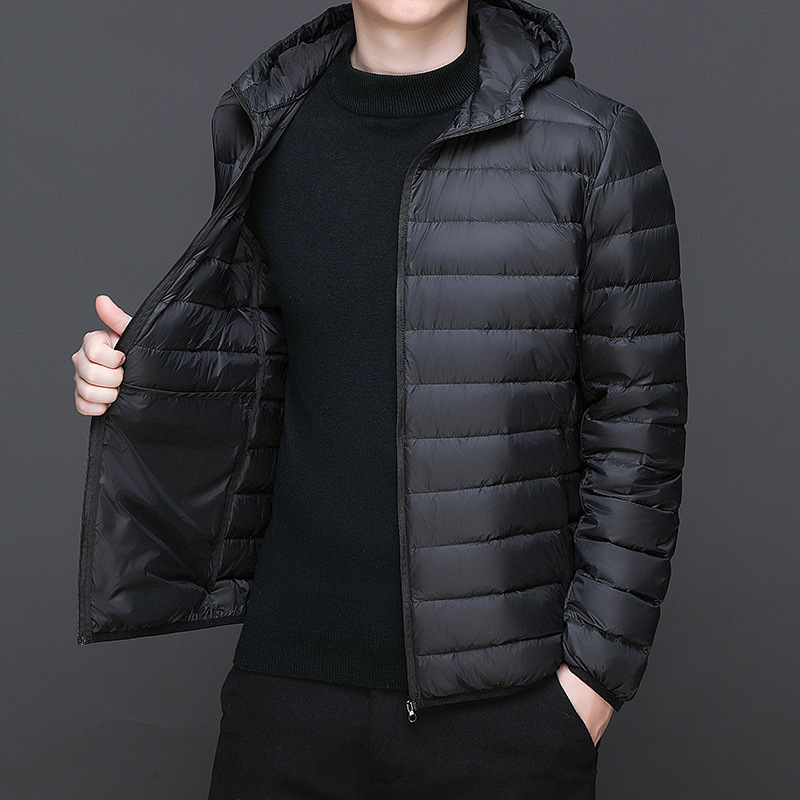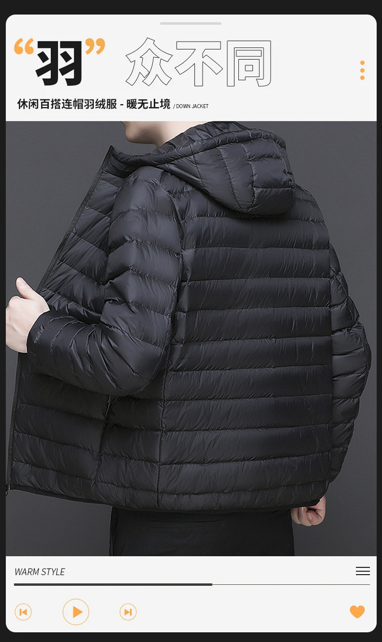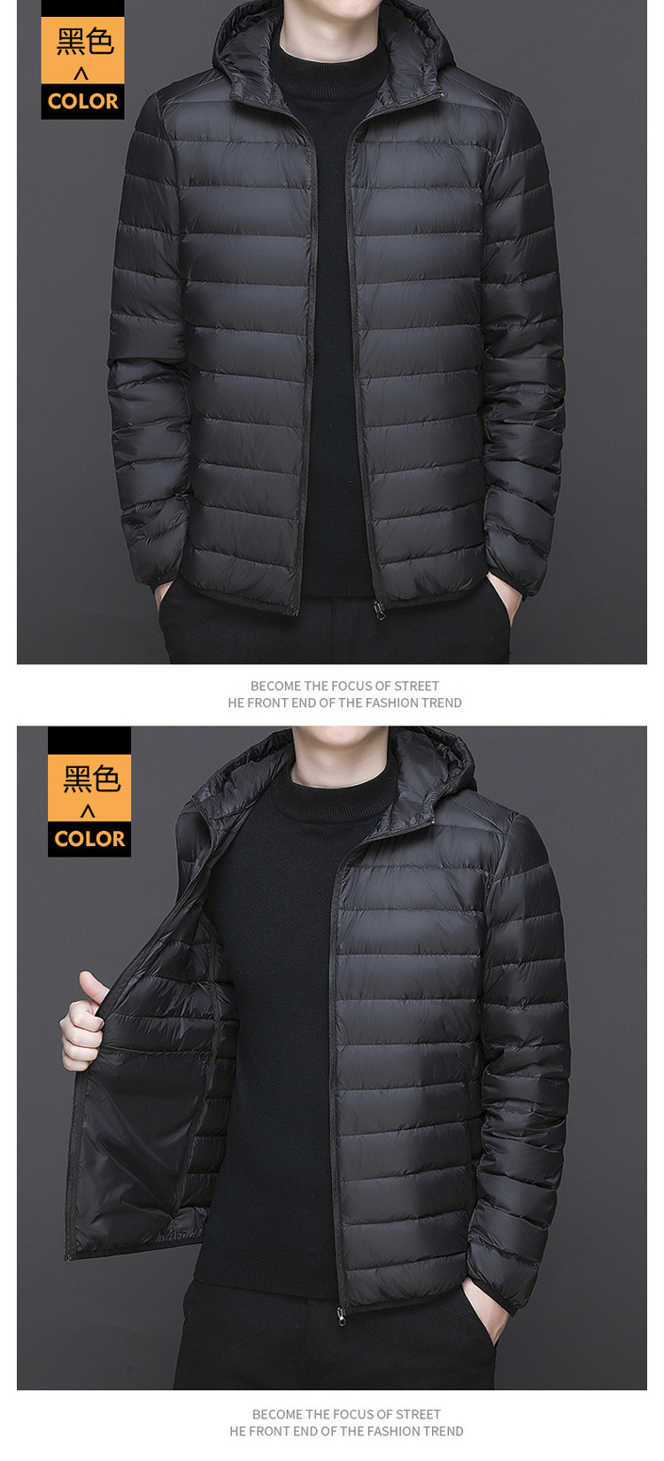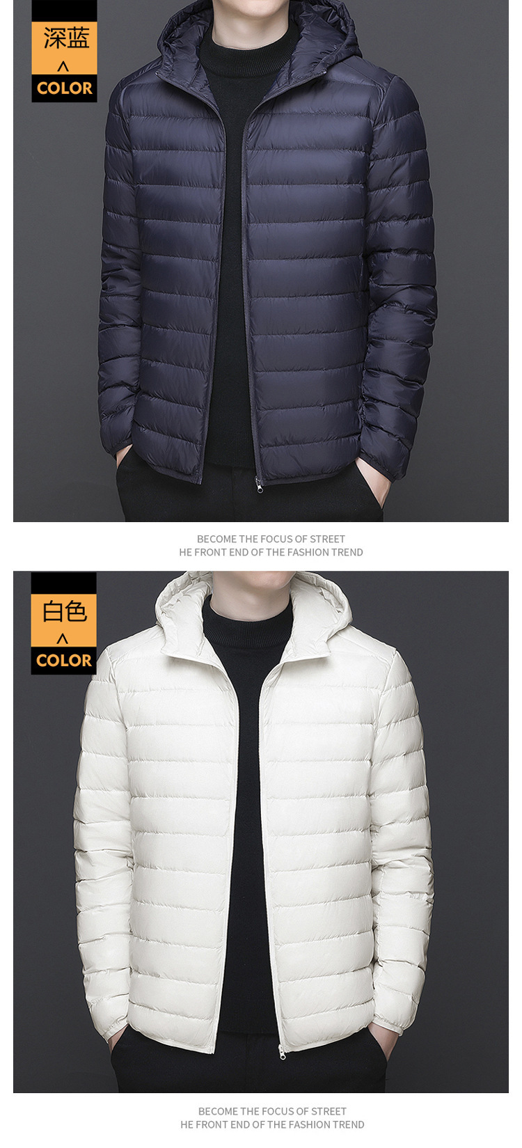 2023 새로운 경량 후드 다운 재킷 남자의 짧은 겨울 따뜻한 코트 오리 다운 머리카락의 한 세대가 될 수 있습니다