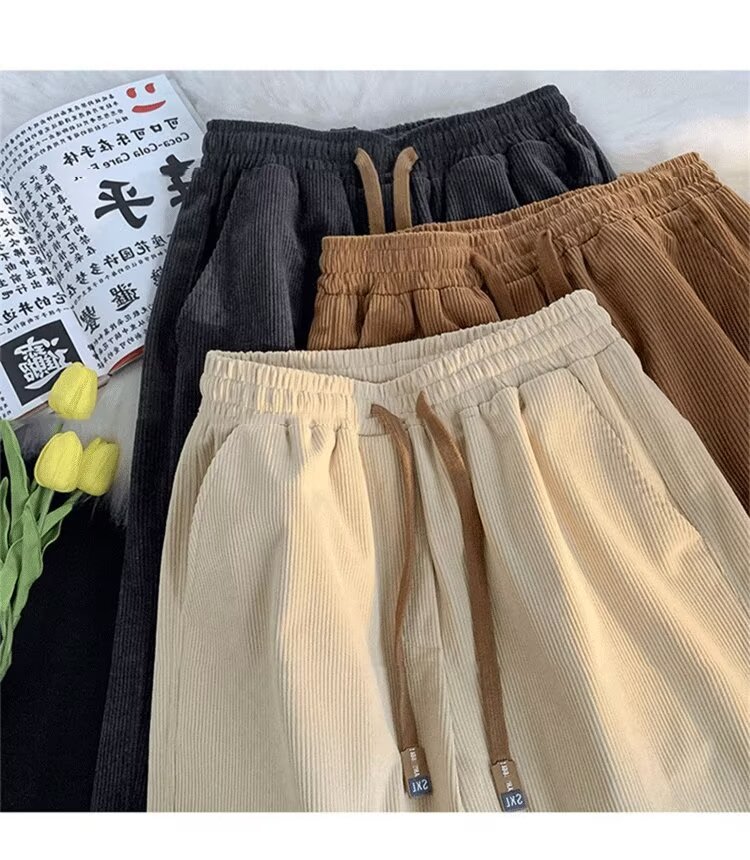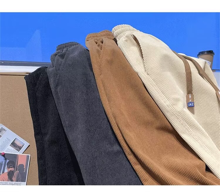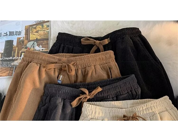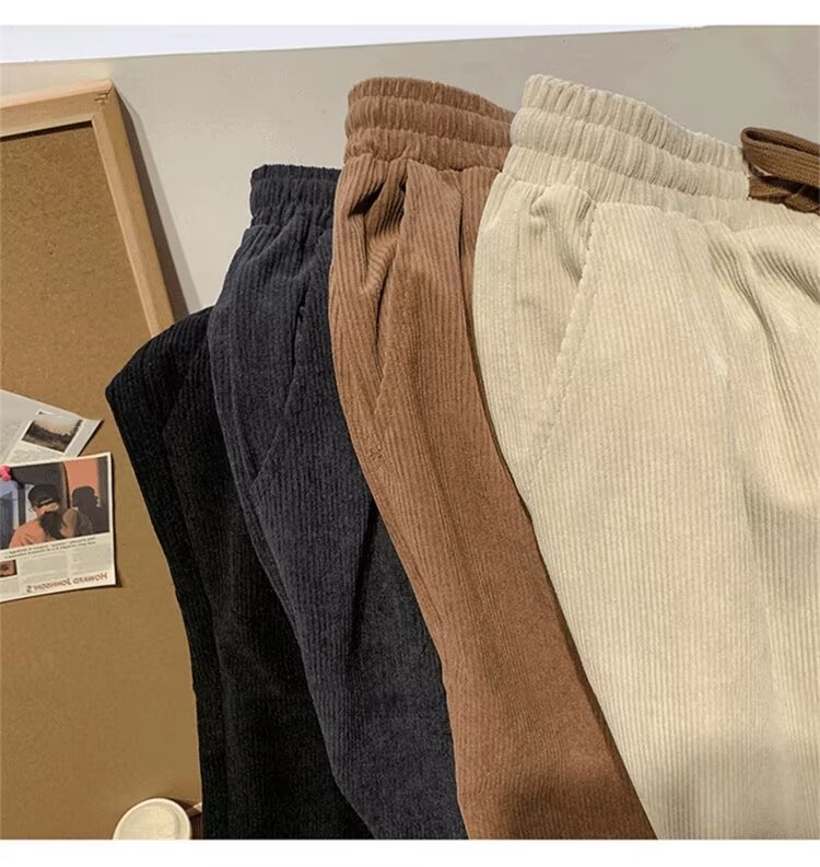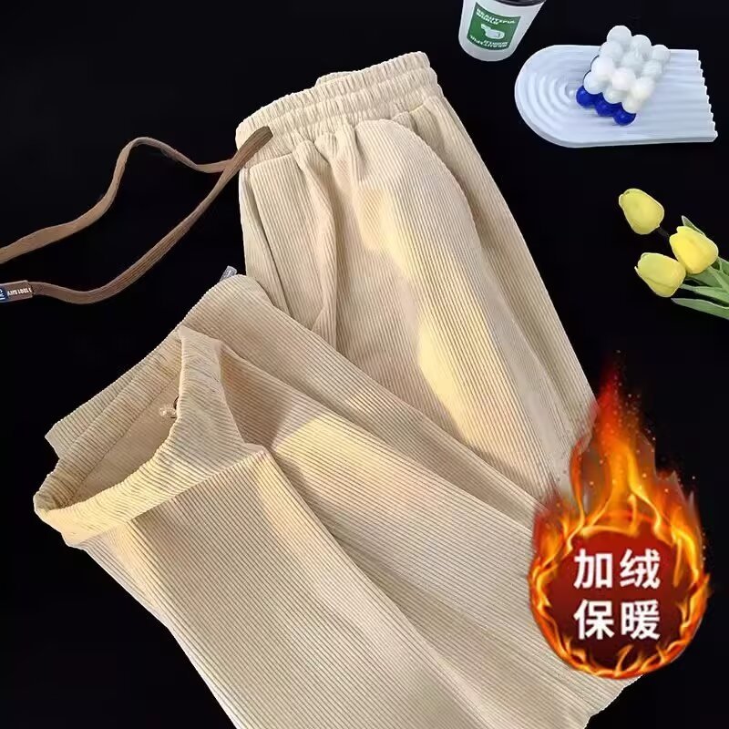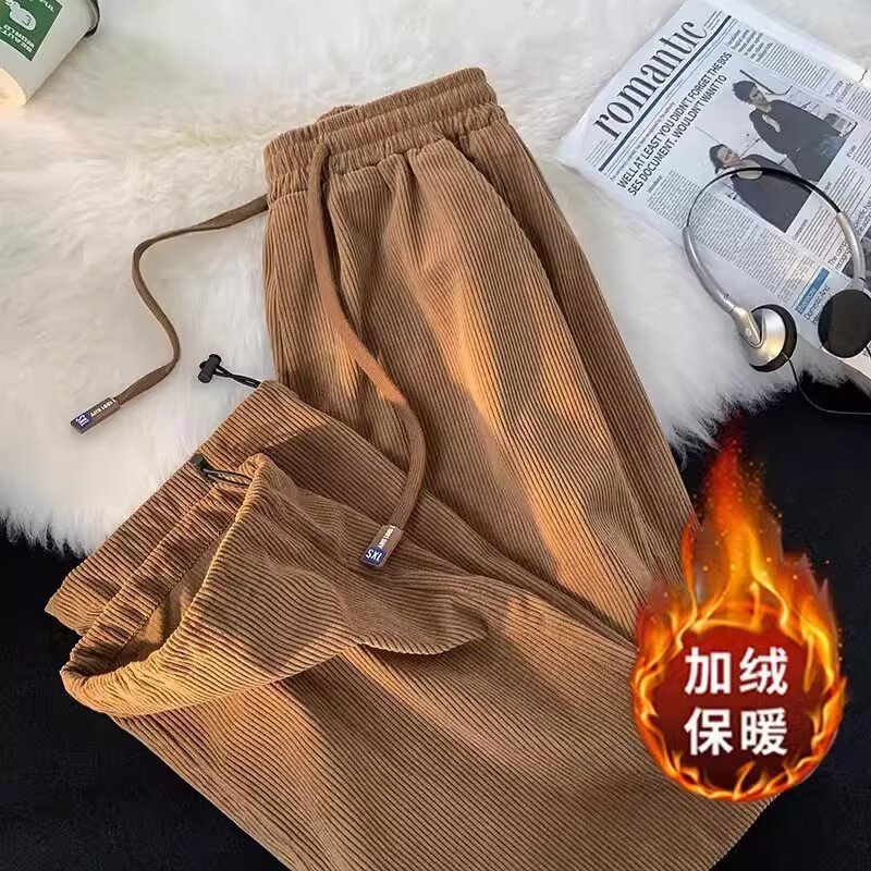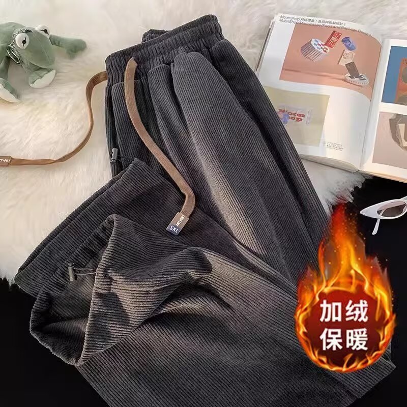 가을과 겨울 유행 코듀로이 올 매치 남녀 커플의 캐주얼 느슨한 다리 바지 기모 따뜻한 긴 바지스토어 가기