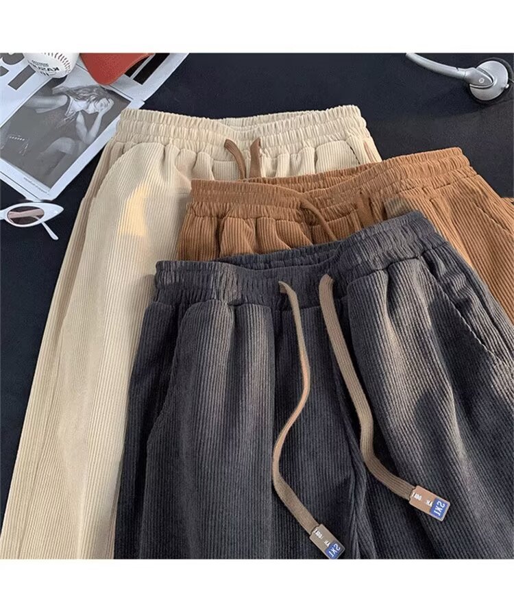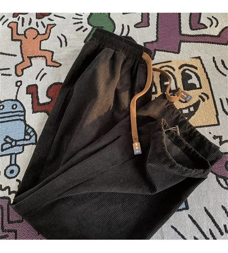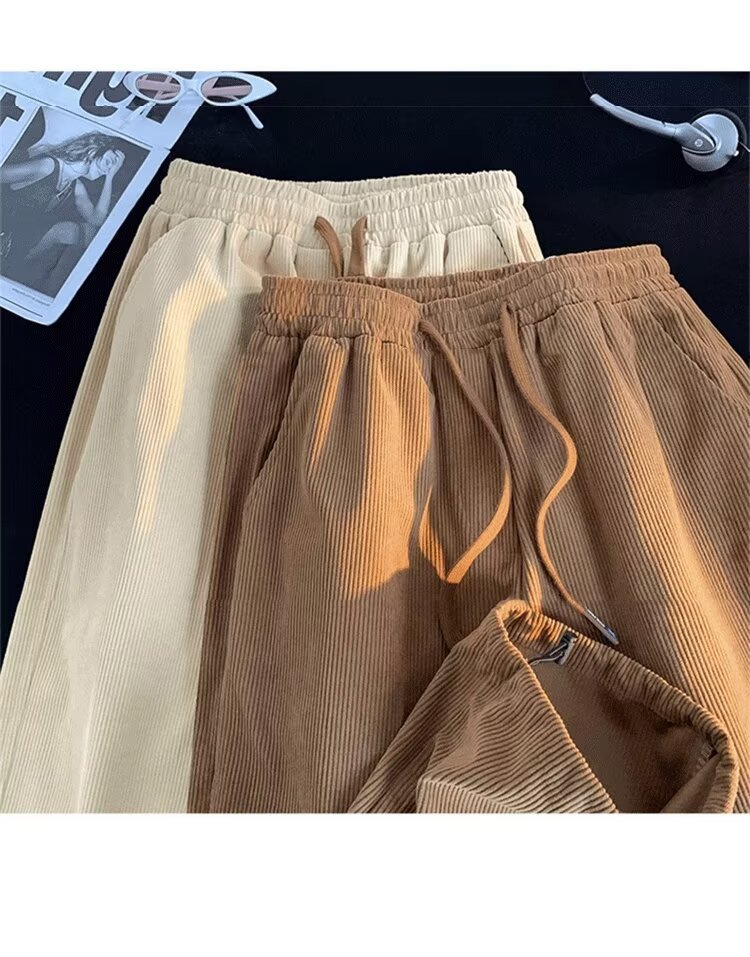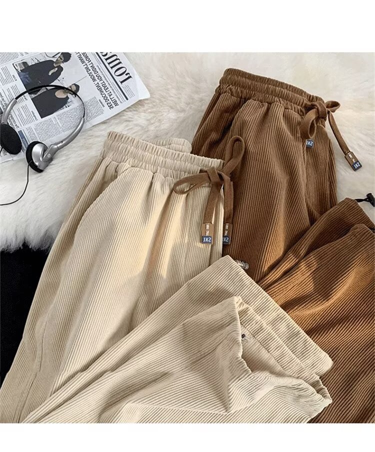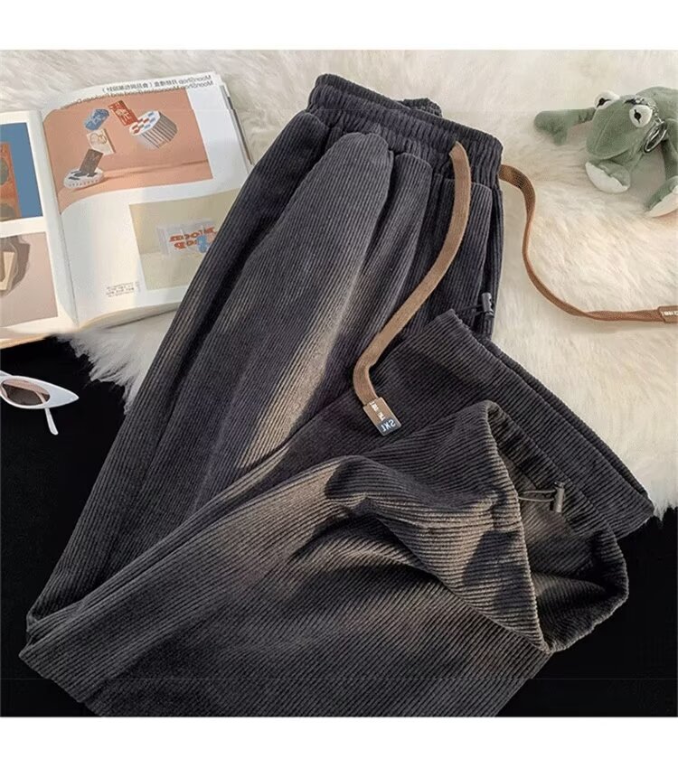 가을과 겨울 유행 코듀로이 올 매치 남녀 커플의 캐주얼 느슨한 다리 바지 기모 따뜻한 긴 바지