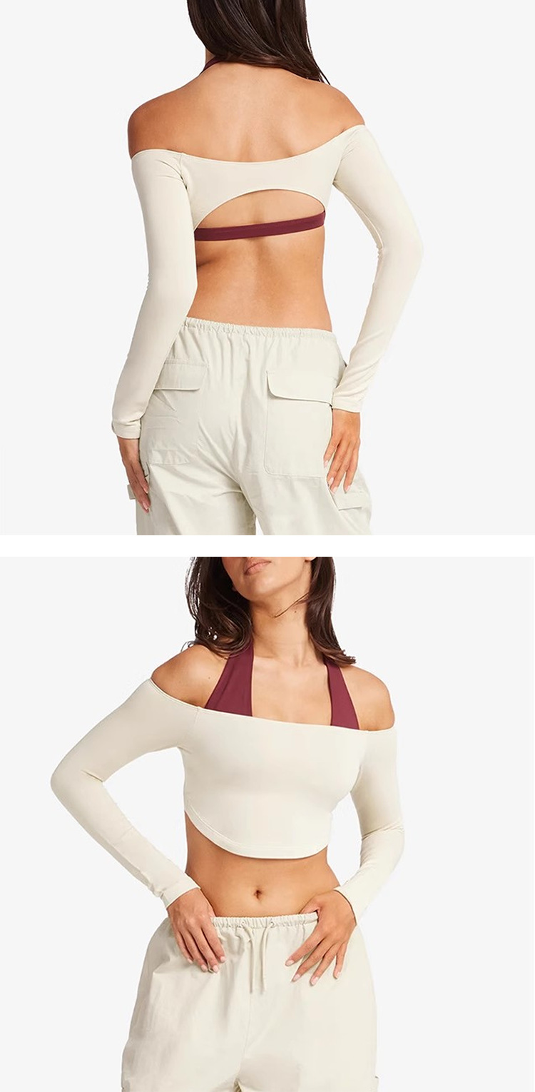 디자인 센스 틈새 순수한 욕망 한 캐릭터 칼라 어깨 아름다운 백 반팔 탑 여성용 타이트 탄성 요가 착용 티셔츠