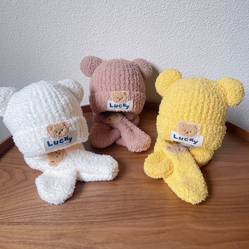 겨울 새로운 아기 모자 아기 모자 어린이 따뜻한 니트 봉제 1 모자 두 조각 유행 세트