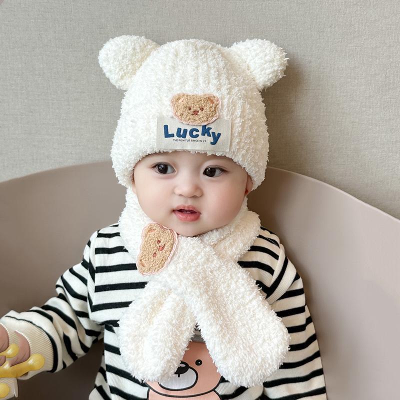 겨울 새로운 아기 모자 아기 모자 어린이 따뜻한 니트 봉제 1 모자 두 조각 유행 세트스토어 가기