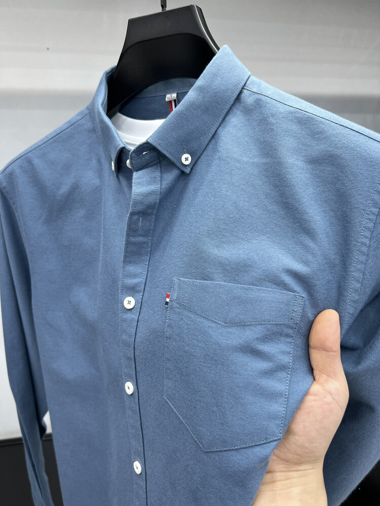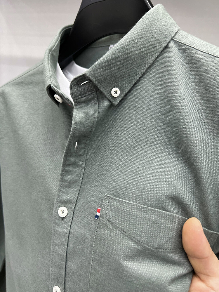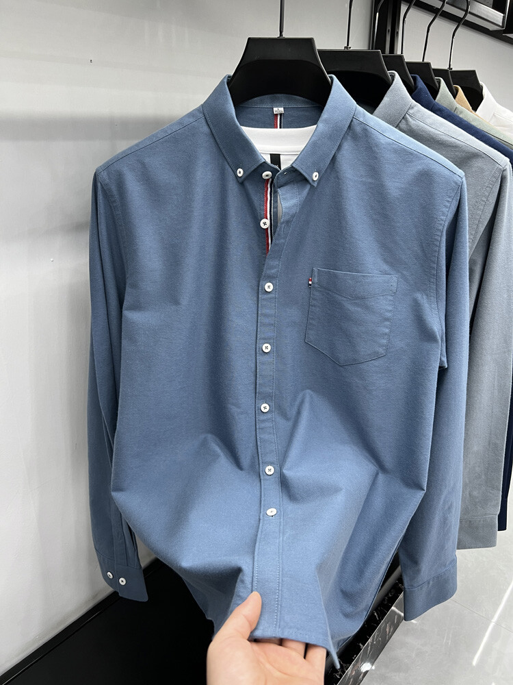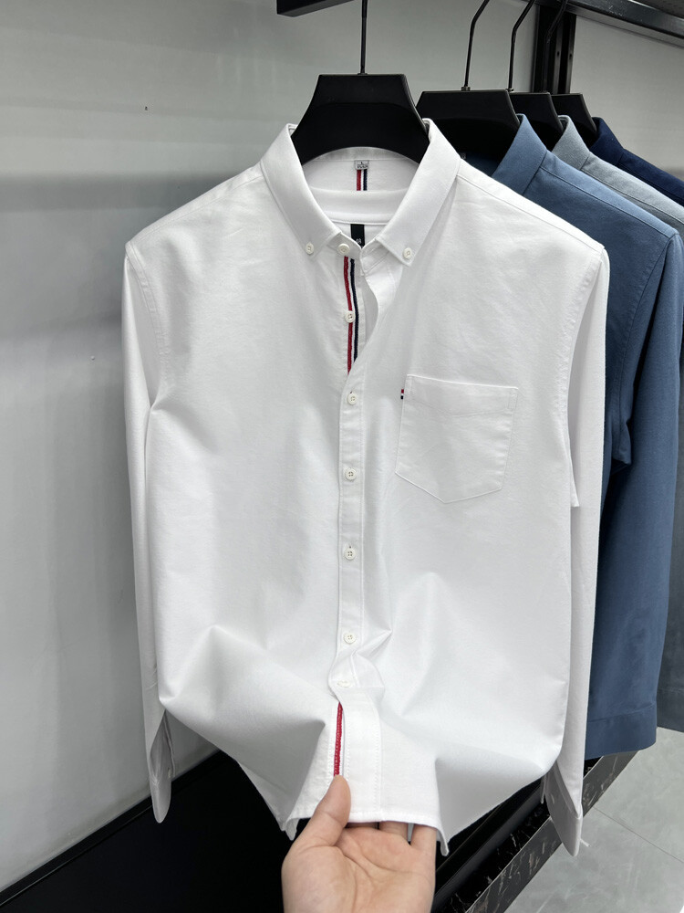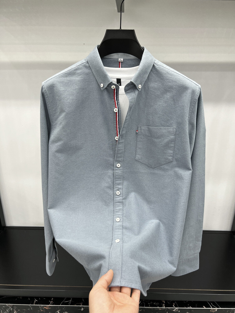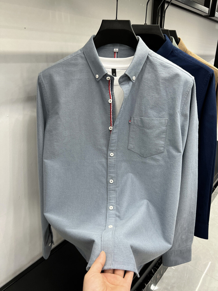 가벼운 럭셔리 하이 엔드 100% 코튼 남성용 긴팔 체크 셔츠 남자 가을 폴 자수 순면 셔츠 남자 봄 셔츠스토어 가기