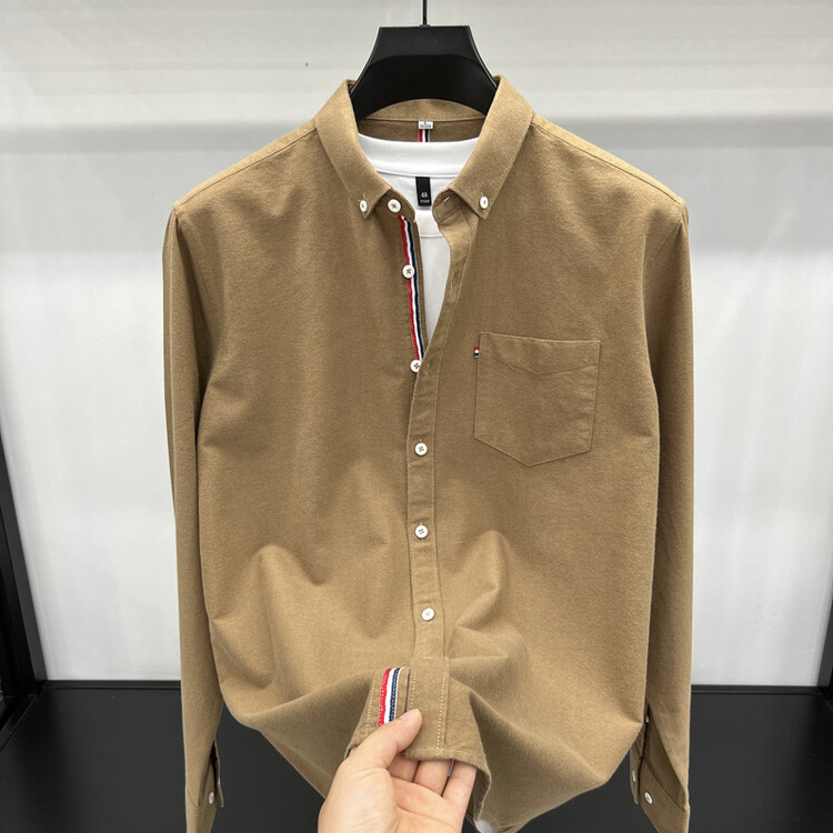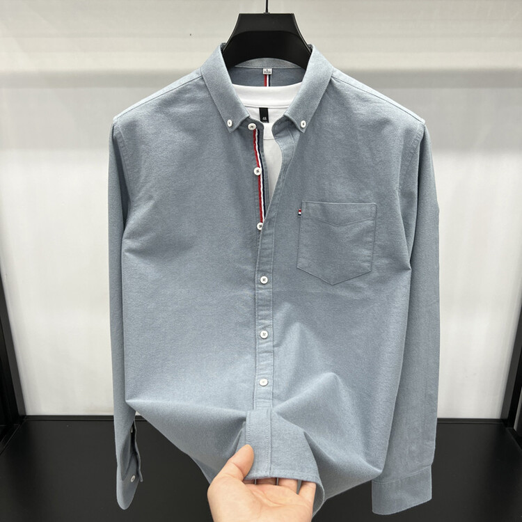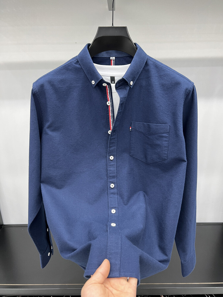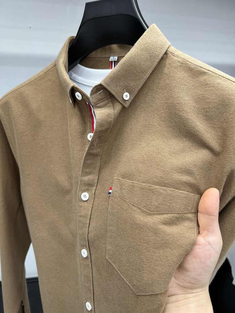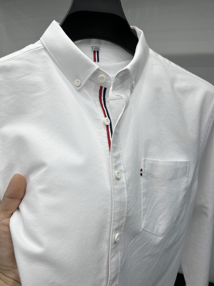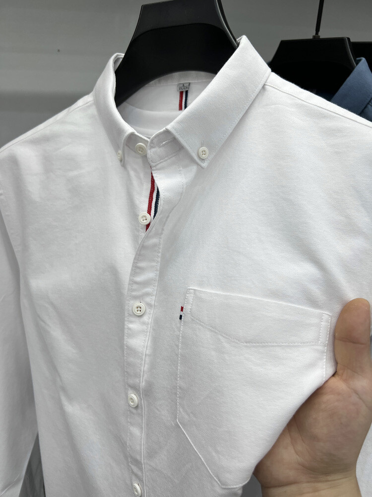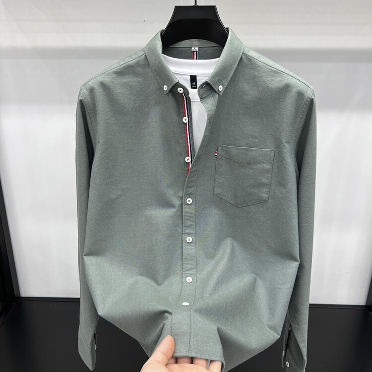 가벼운 럭셔리 하이 엔드 100% 코튼 남성용 긴팔 체크 셔츠 남자 가을 폴 자수 순면 셔츠 남자 봄 셔츠스토어 가기