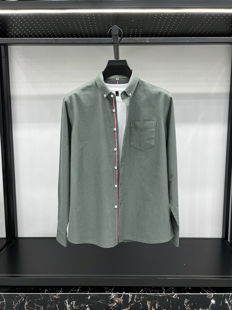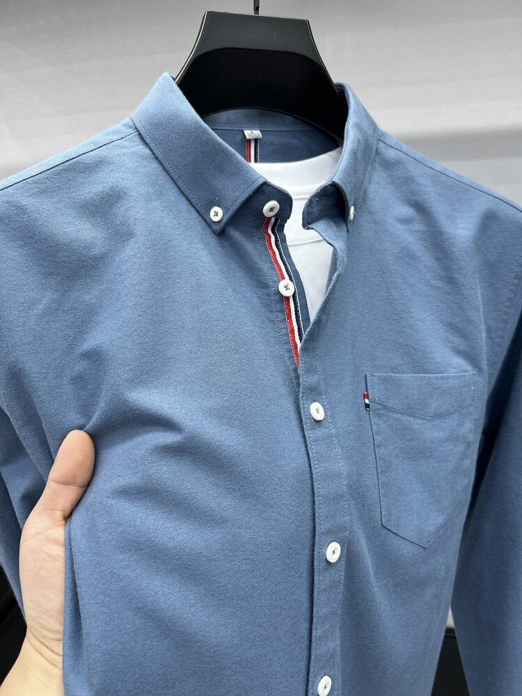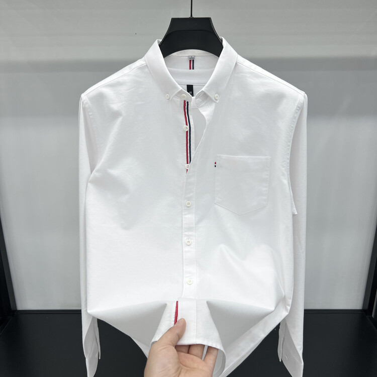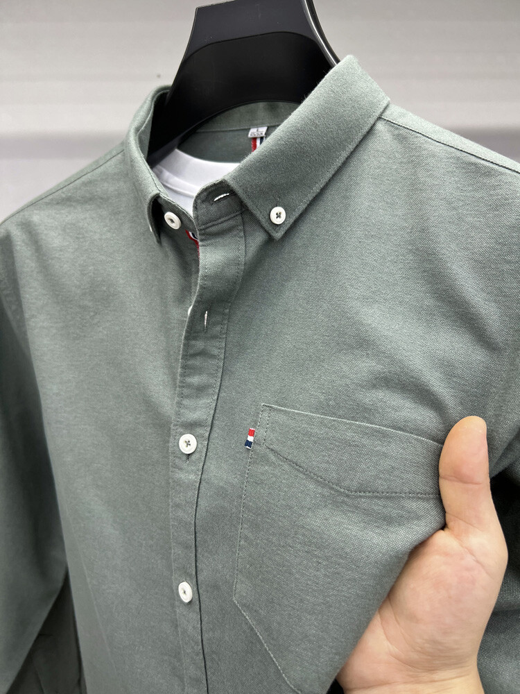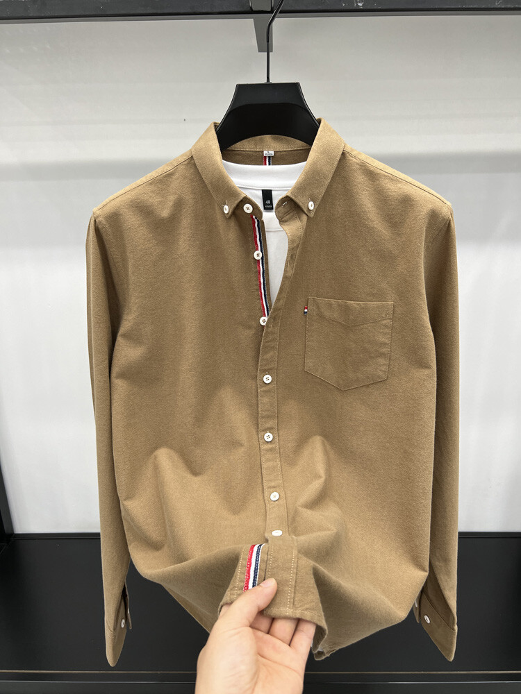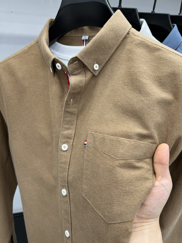 가벼운 럭셔리 하이 엔드 100% 코튼 남성용 긴팔 체크 셔츠 남자 가을 폴 자수 순면 셔츠 남자 봄 셔츠스토어 가기