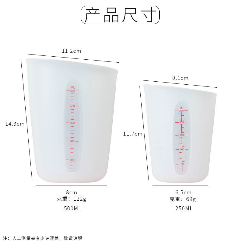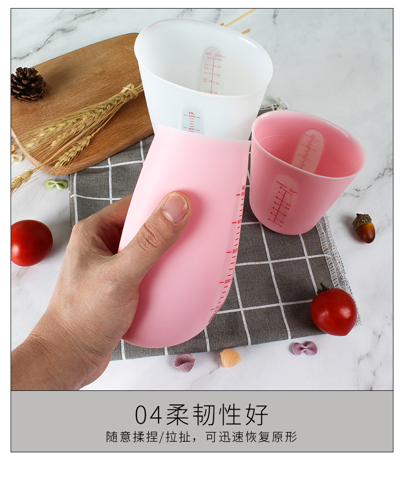 대용량 눈금이 있는 크로스보더 실리콘 계량컵, 고온 방지 밀크티 컵, 가정용 주방 베이킹 도구 세트 도매