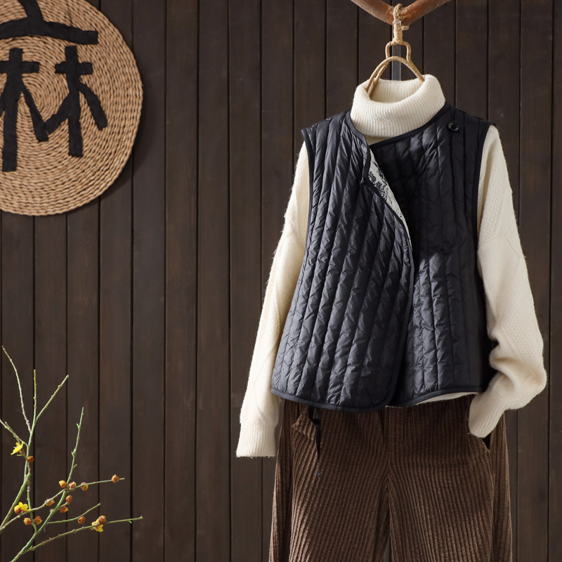 양면 다운 조끼 여자 2024 가을 겨울 새로운 90 화이트 덕 다운 빈티지 오비큐 조끼 재킷 루즈 올 매치 재킷