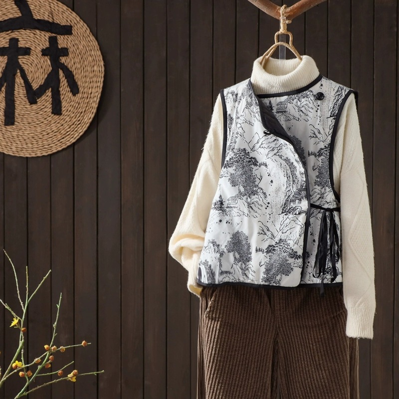 양면 다운 조끼 여자 2024 가을 겨울 새로운 90 화이트 덕 다운 빈티지 오비큐 조끼 재킷 루즈 올 매치 재킷스토어 가기