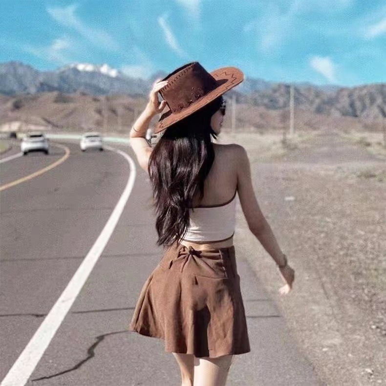 국경 간 도매 서부 데님 모자 남성과 여성의 자외선 차단제 모자 유럽과 미국 스타일의 복고풍 큰 처마 해변 태양 모자