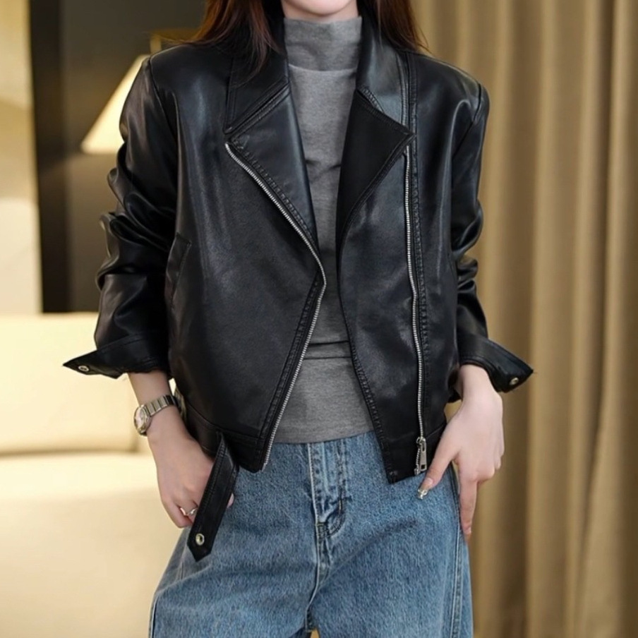 가을 2024 디자인 센스 여성용 가죽 코트 여성용 오토바이 짧은 캐주얼 루즈 레트로 가죽 자켓스토어 가기