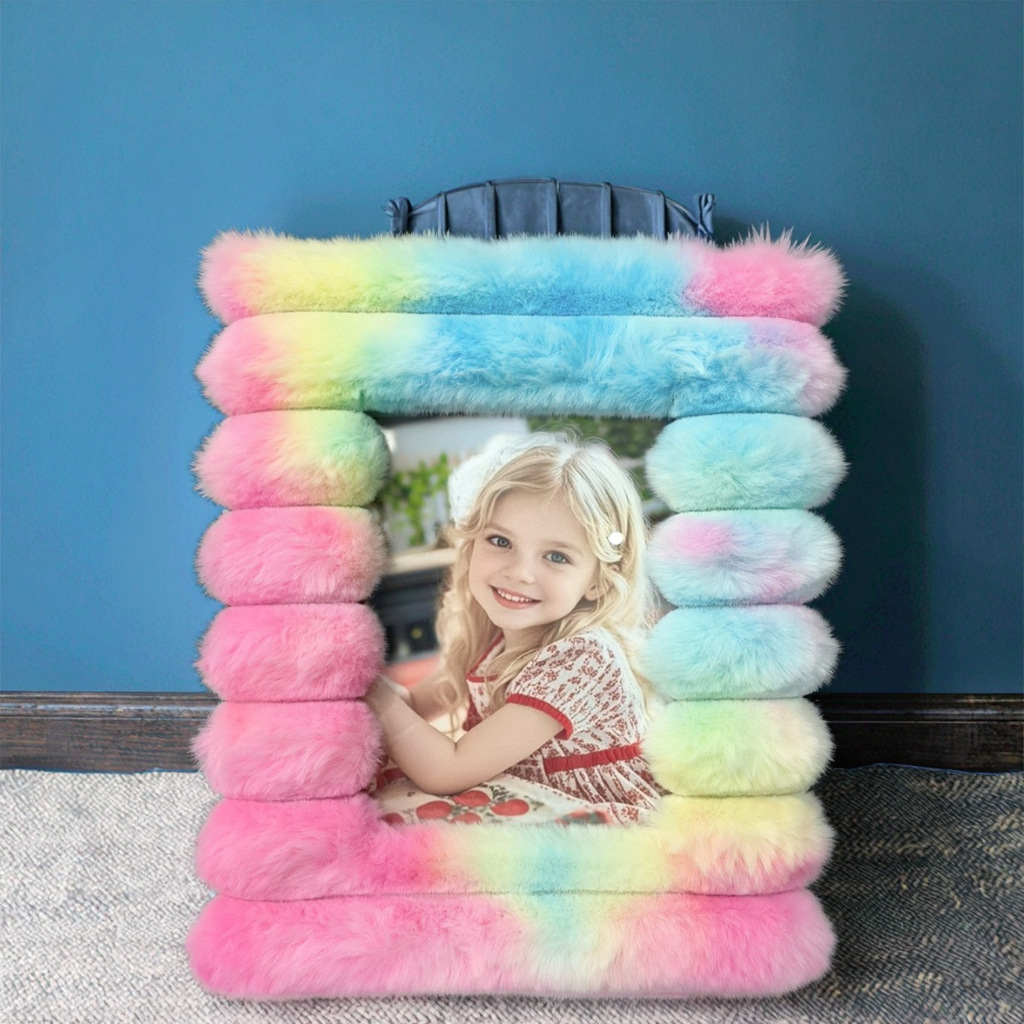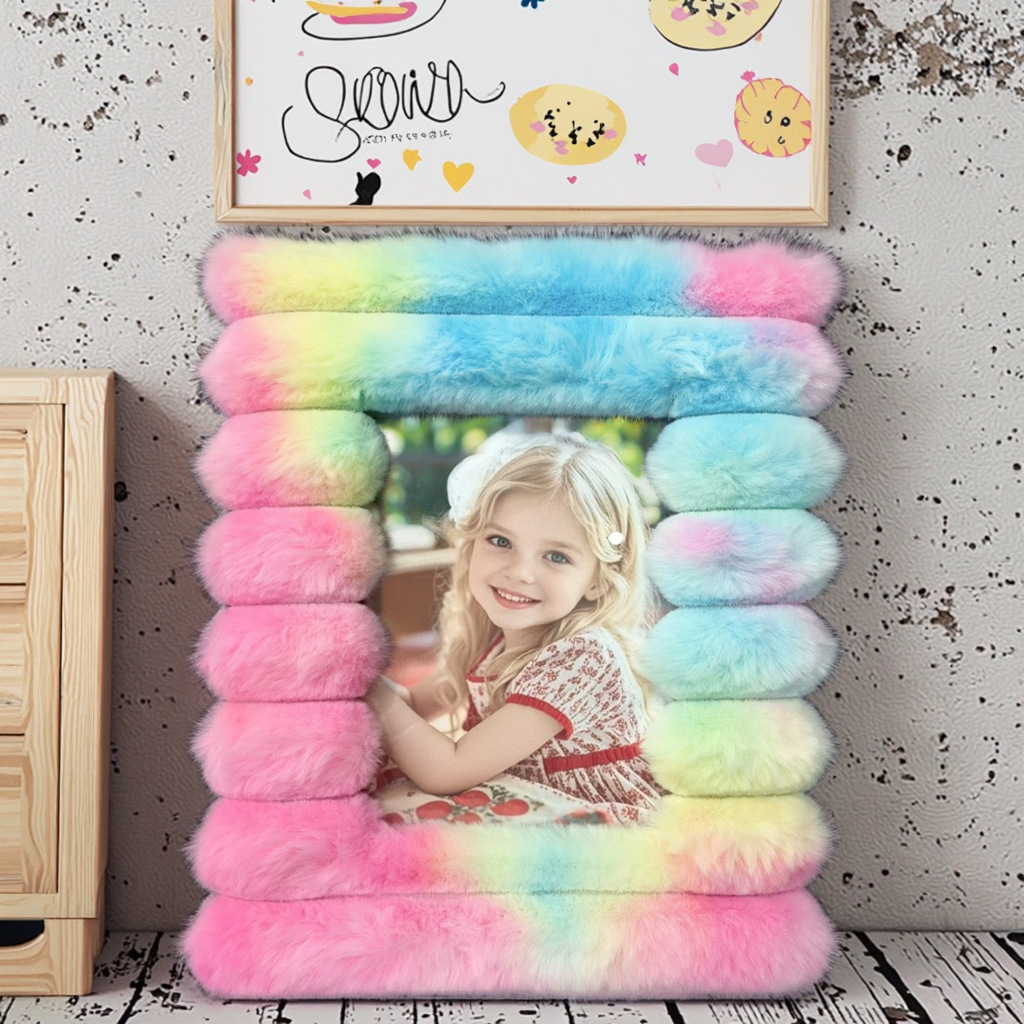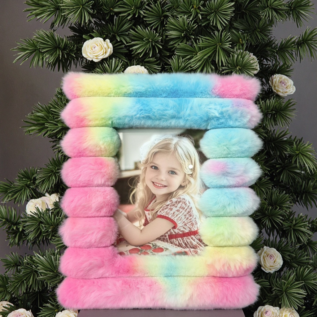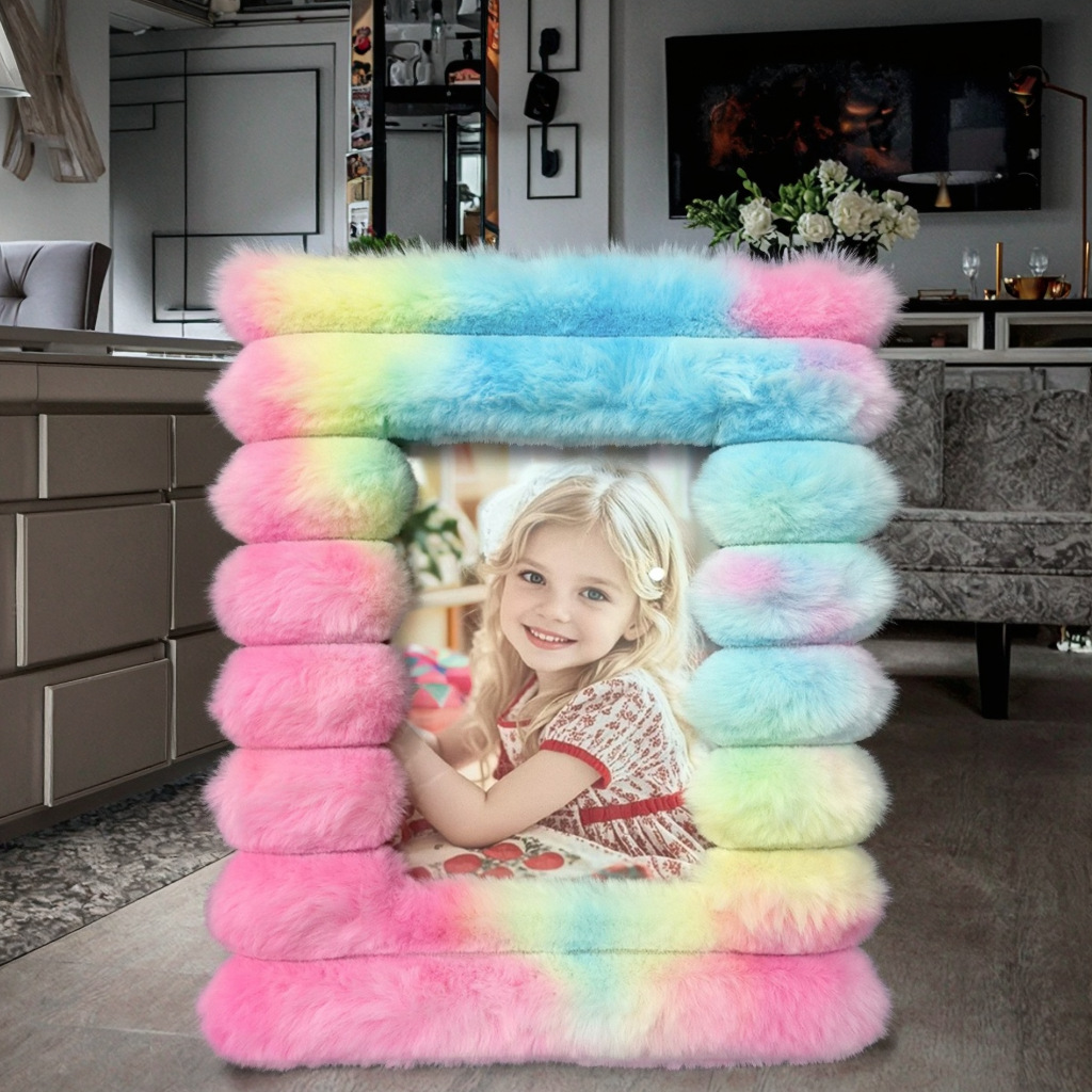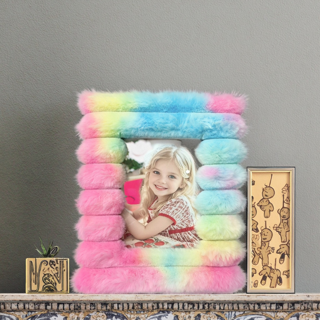 플러시 사진액자 밀도보드(밀도보드)에 토끼털 같은 벨벳 원단을 덮은 사각형 중공 사진액자 유럽 및 미국 MDF 탁상용 액자 7inch 아마존 레인보우