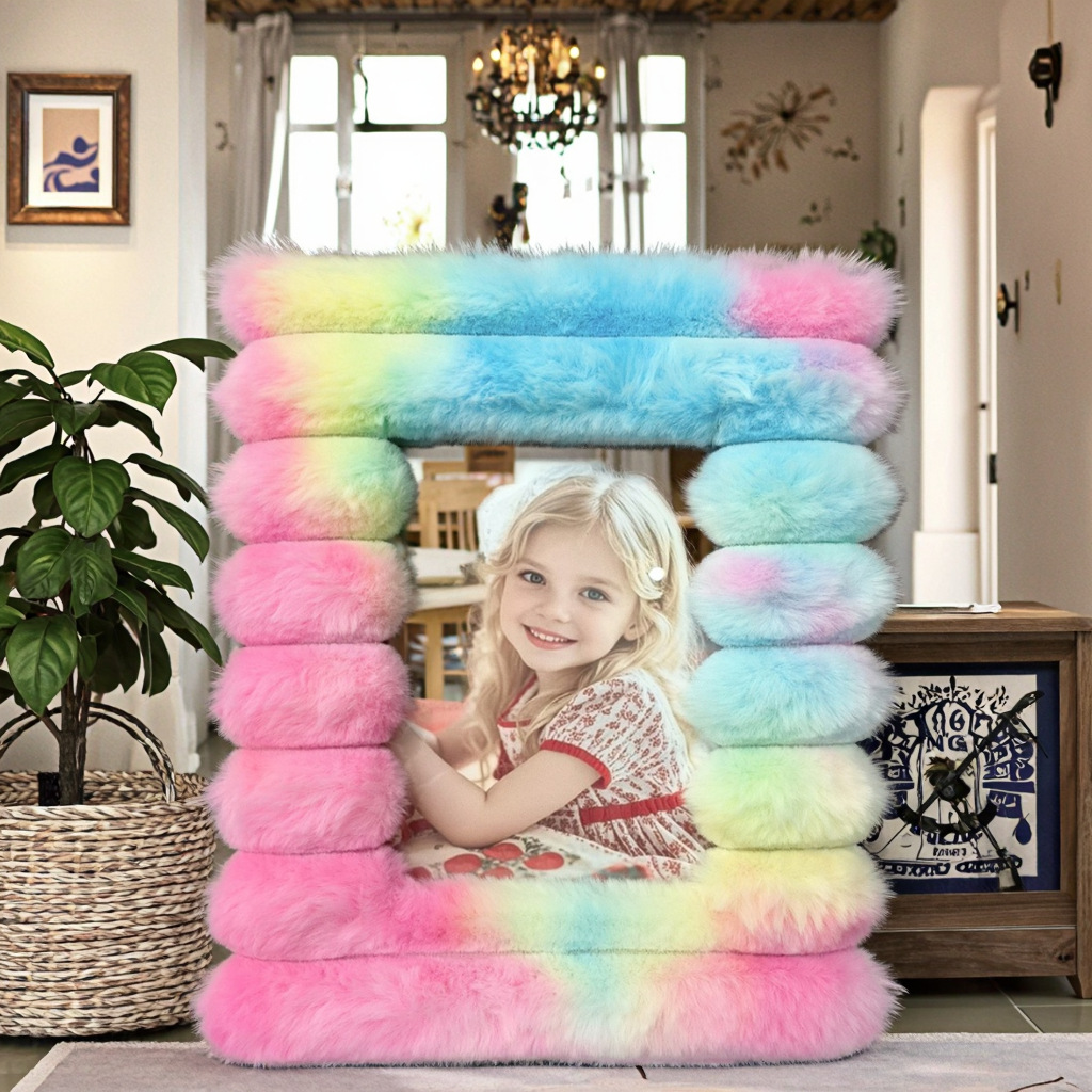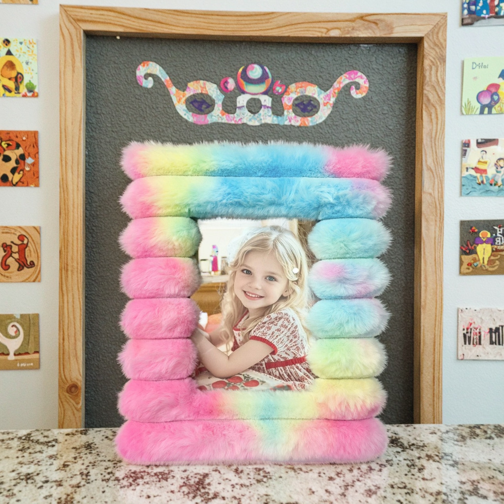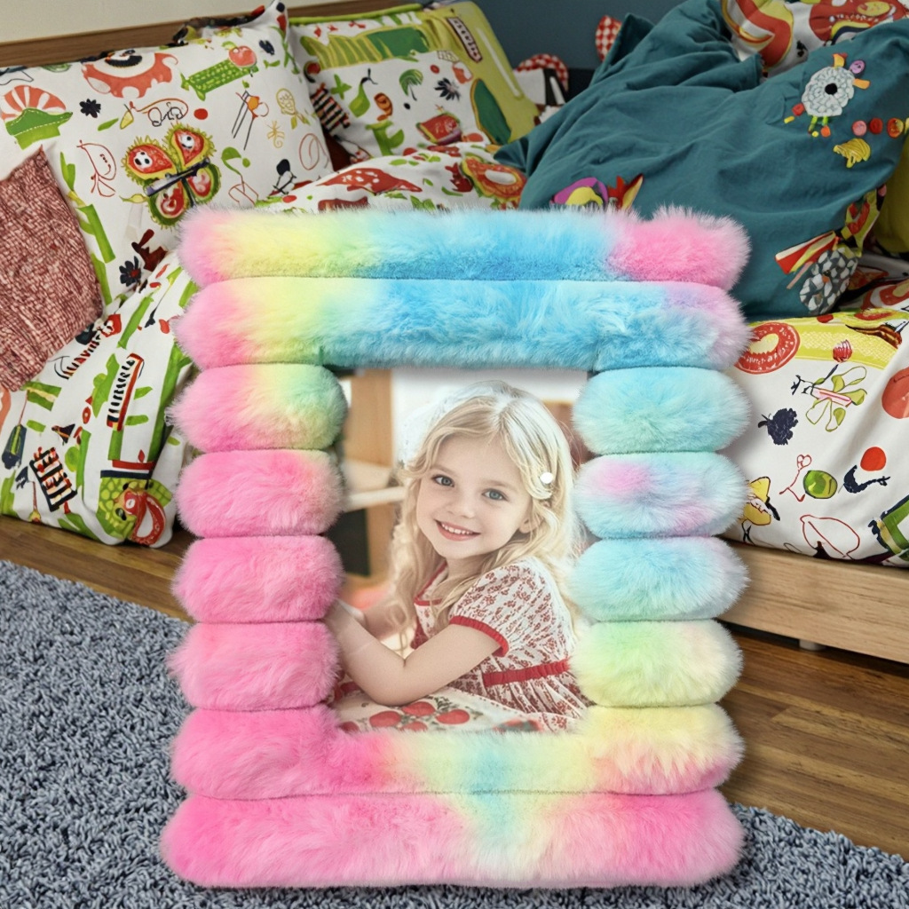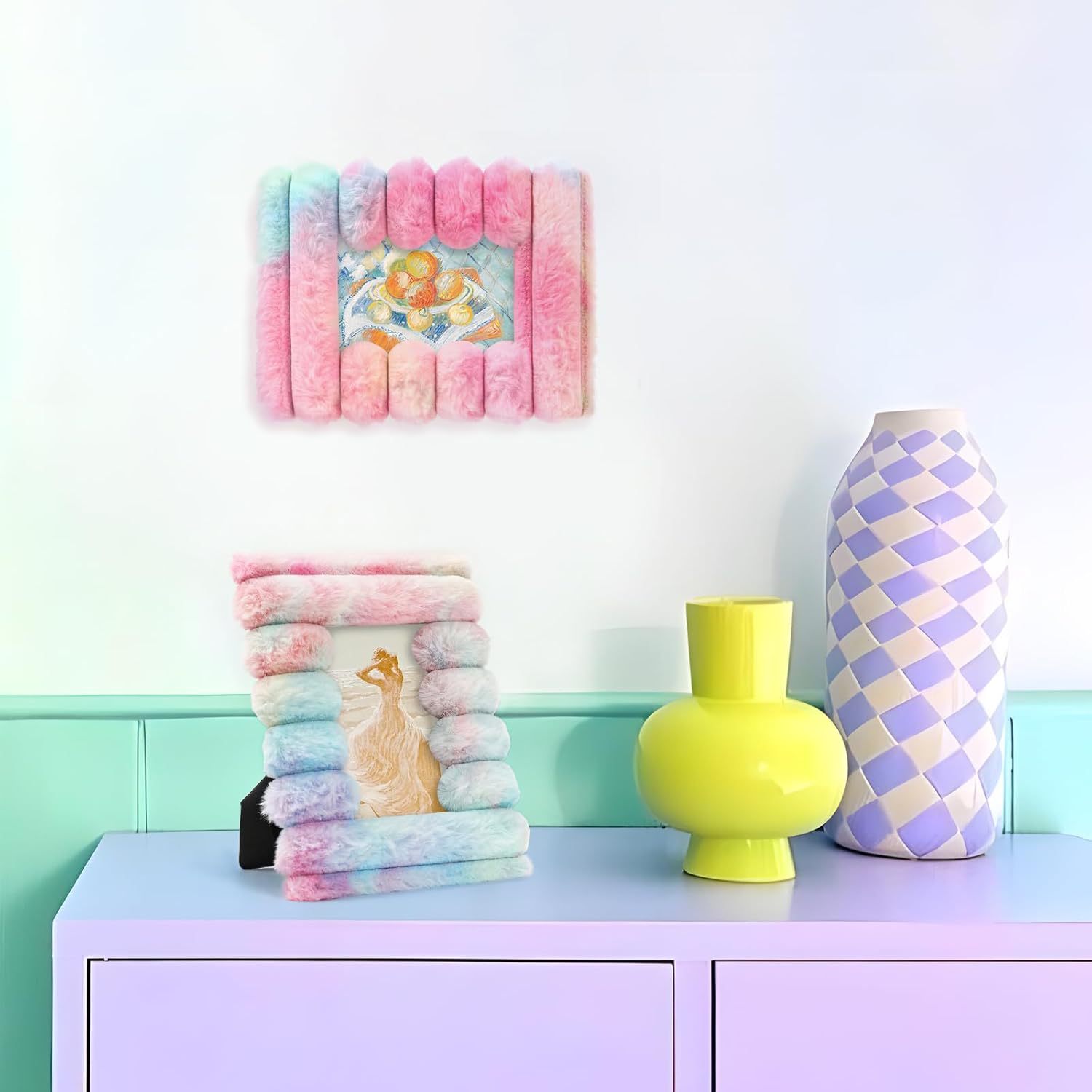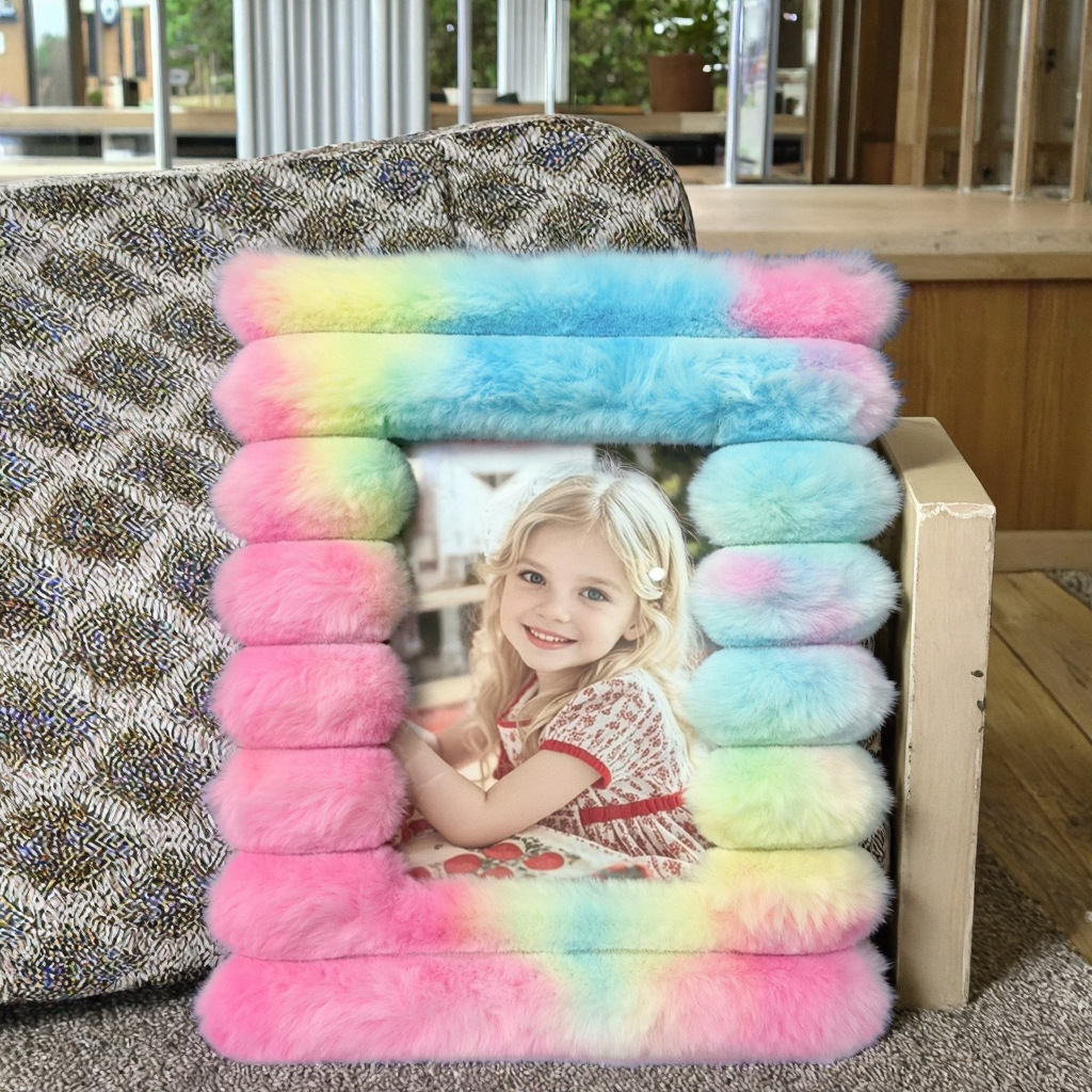 플러시 사진액자 밀도보드(밀도보드)에 토끼털 같은 벨벳 원단을 덮은 사각형 중공 사진액자 유럽 및 미국 MDF 탁상용 액자 7inch 아마존 레인보우