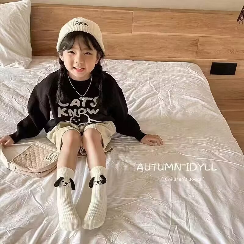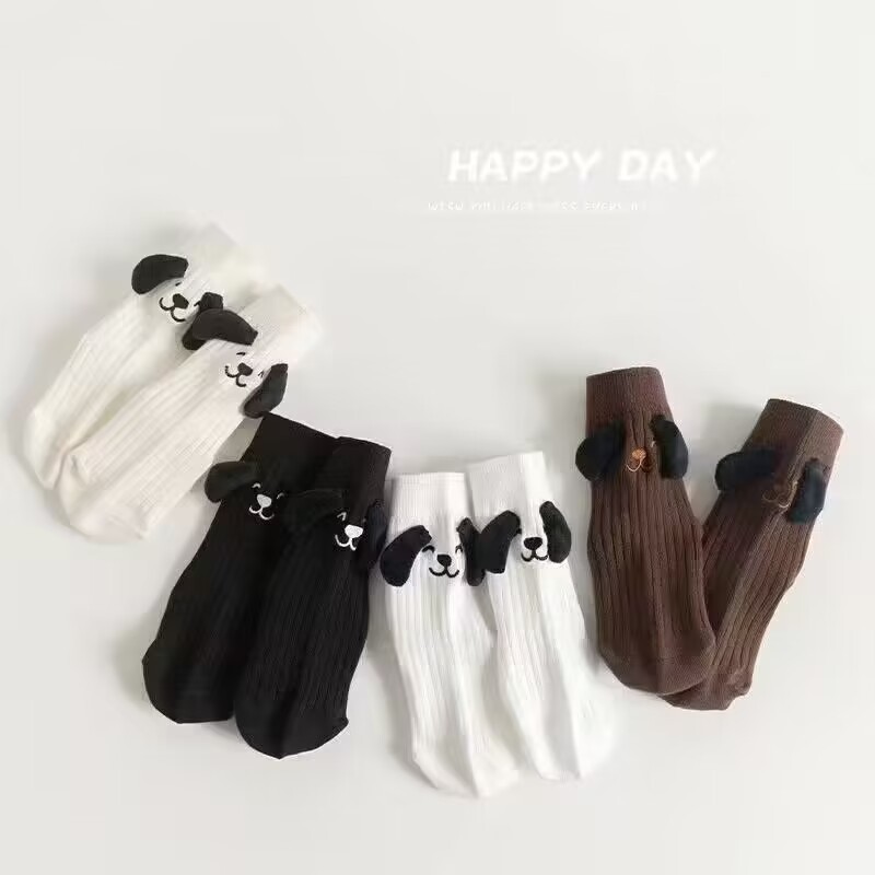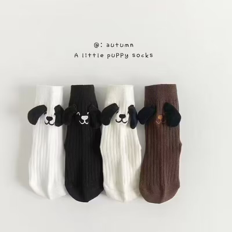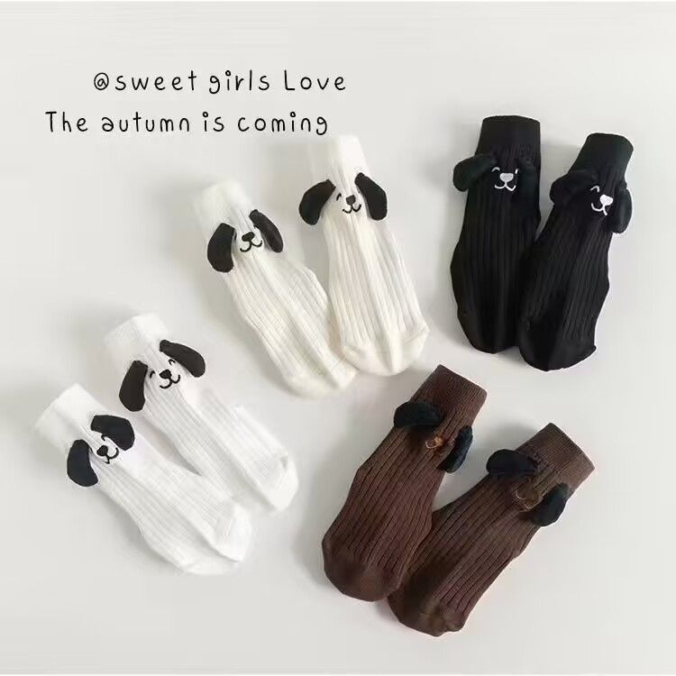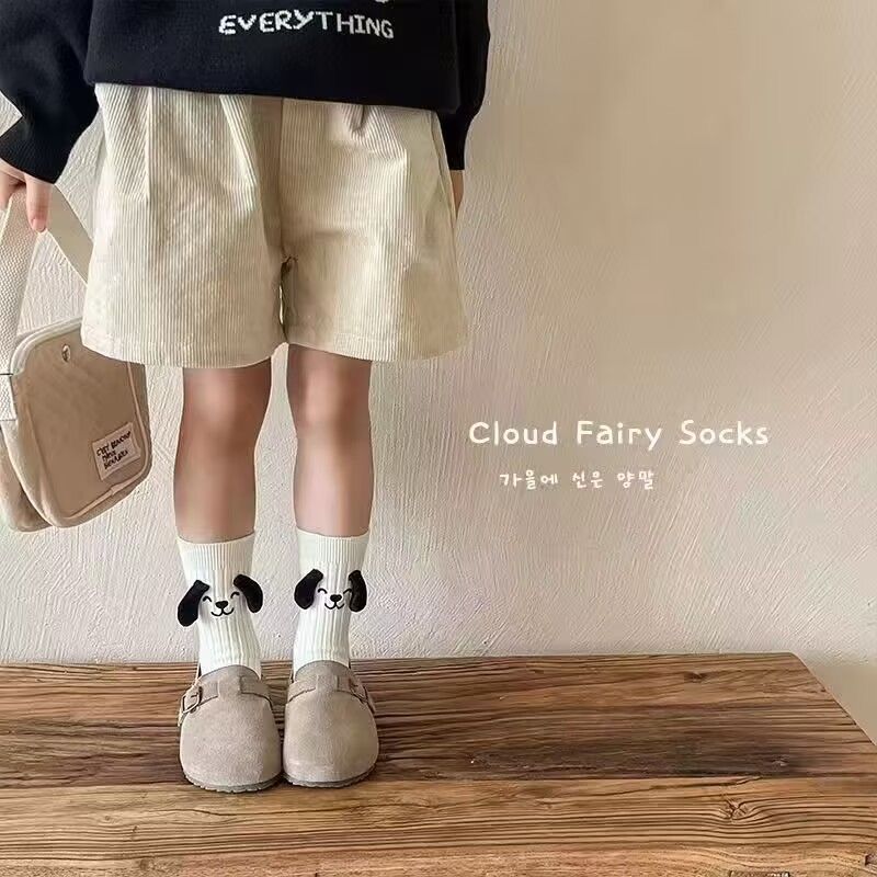 가을 겨울 신상 인형 귀여운 만화 캐릭터 어린이 재미있는 양말 입체 강아지 귀 양말 통기성 좋은 다용도 중목 양말