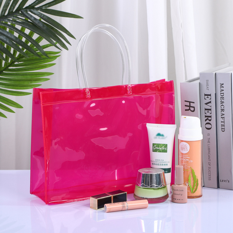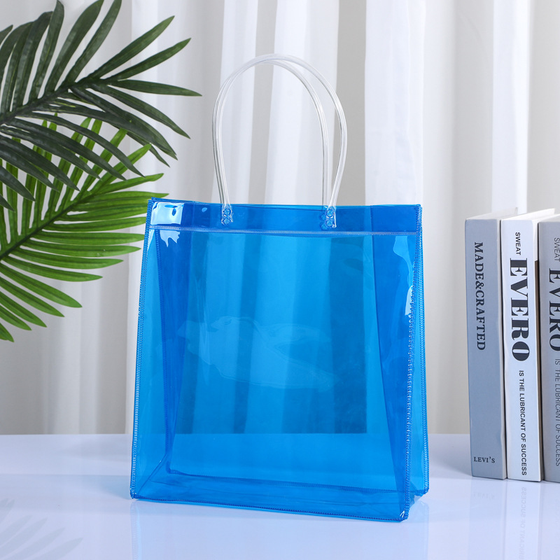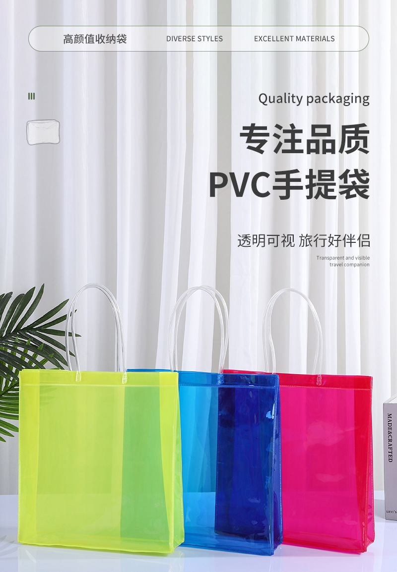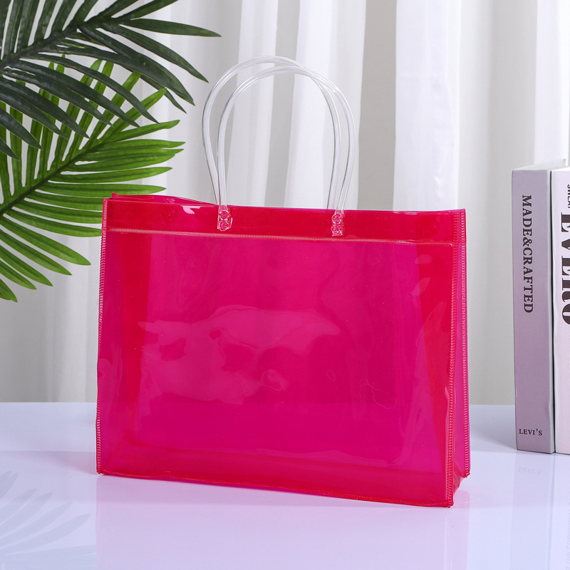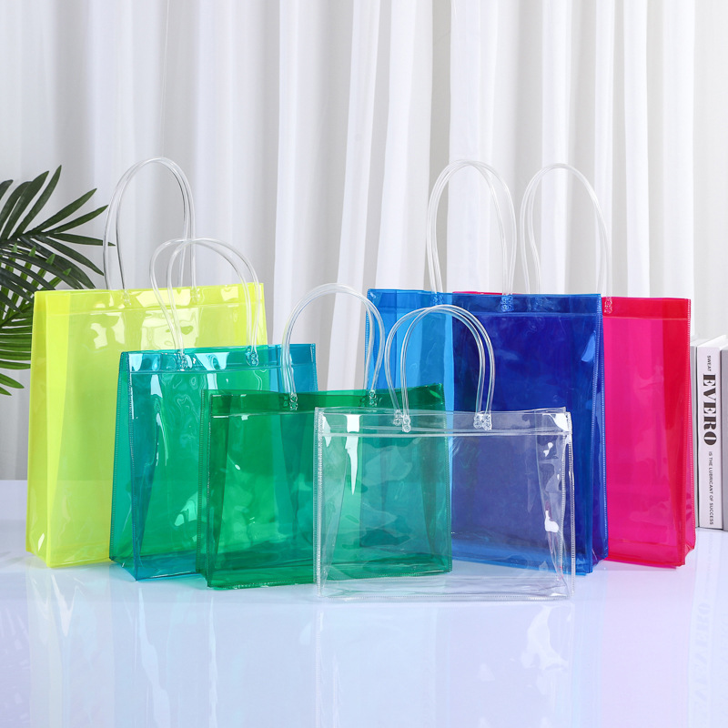 다채로운 PVC 핸드백 도매 기념품 사탕 가방 휴대용 플라스틱 선물 포장 가방 꽃 PVC 가방 사용자 정의스토어 가기