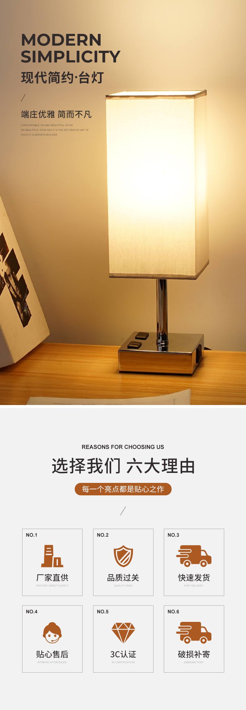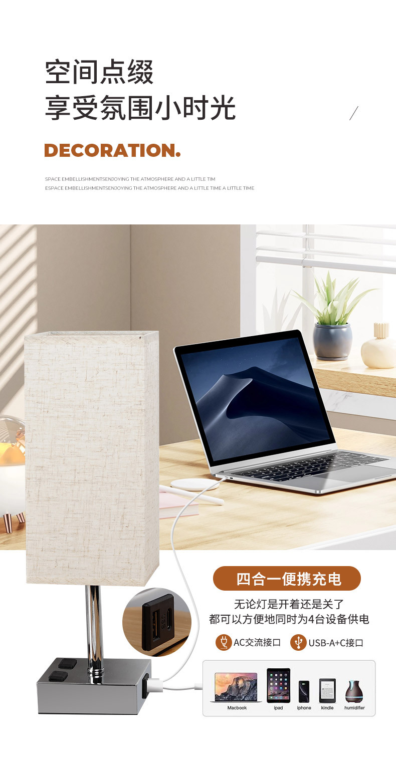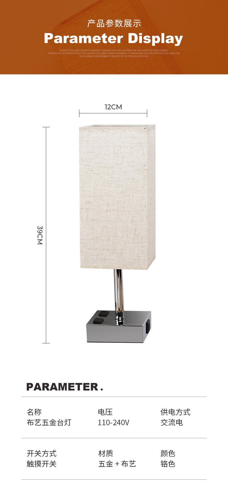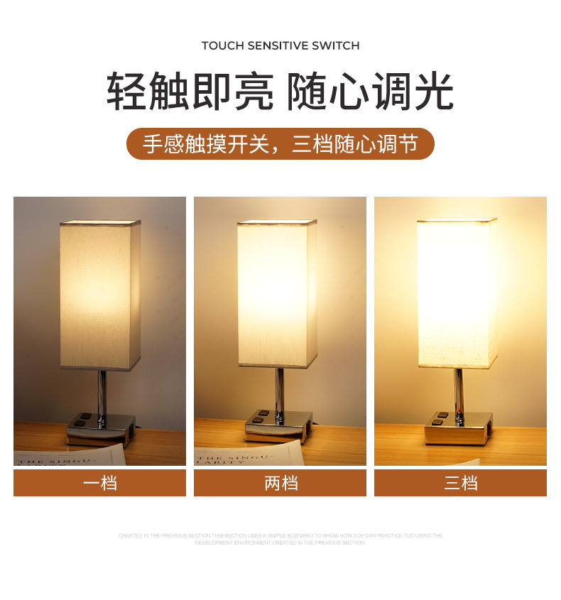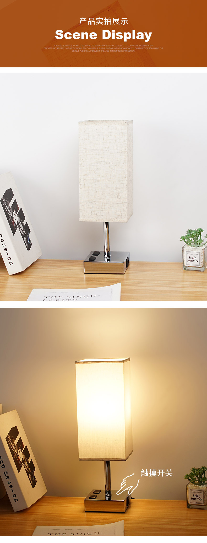 크로스보더 북유럽 스타일 심플 터치 패브릭 테이블 램프 USB 충전식 테이블 램프 LED 3단계 조광 침실 장식용 침대 옆 램프스토어 가기