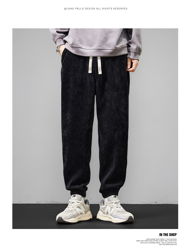 남자 스포츠 바지 가을 하이 엔드 짠 끈 느슨한 부드러운 탄성 편안한 캐주얼 다리 발가락 스웨트 팬츠스토어 가기