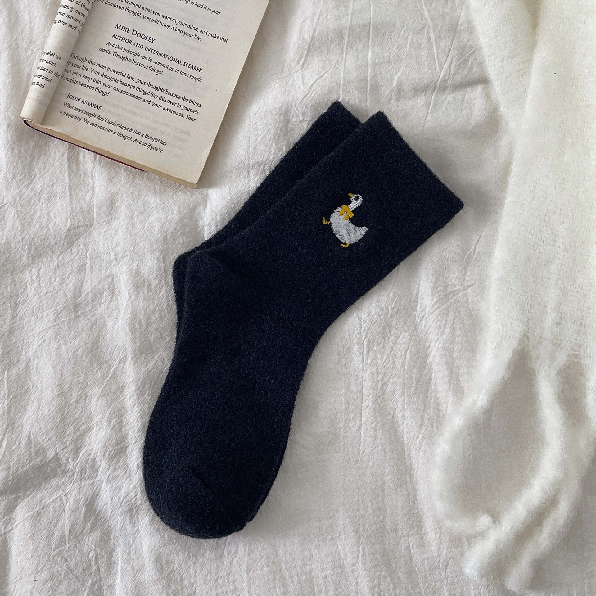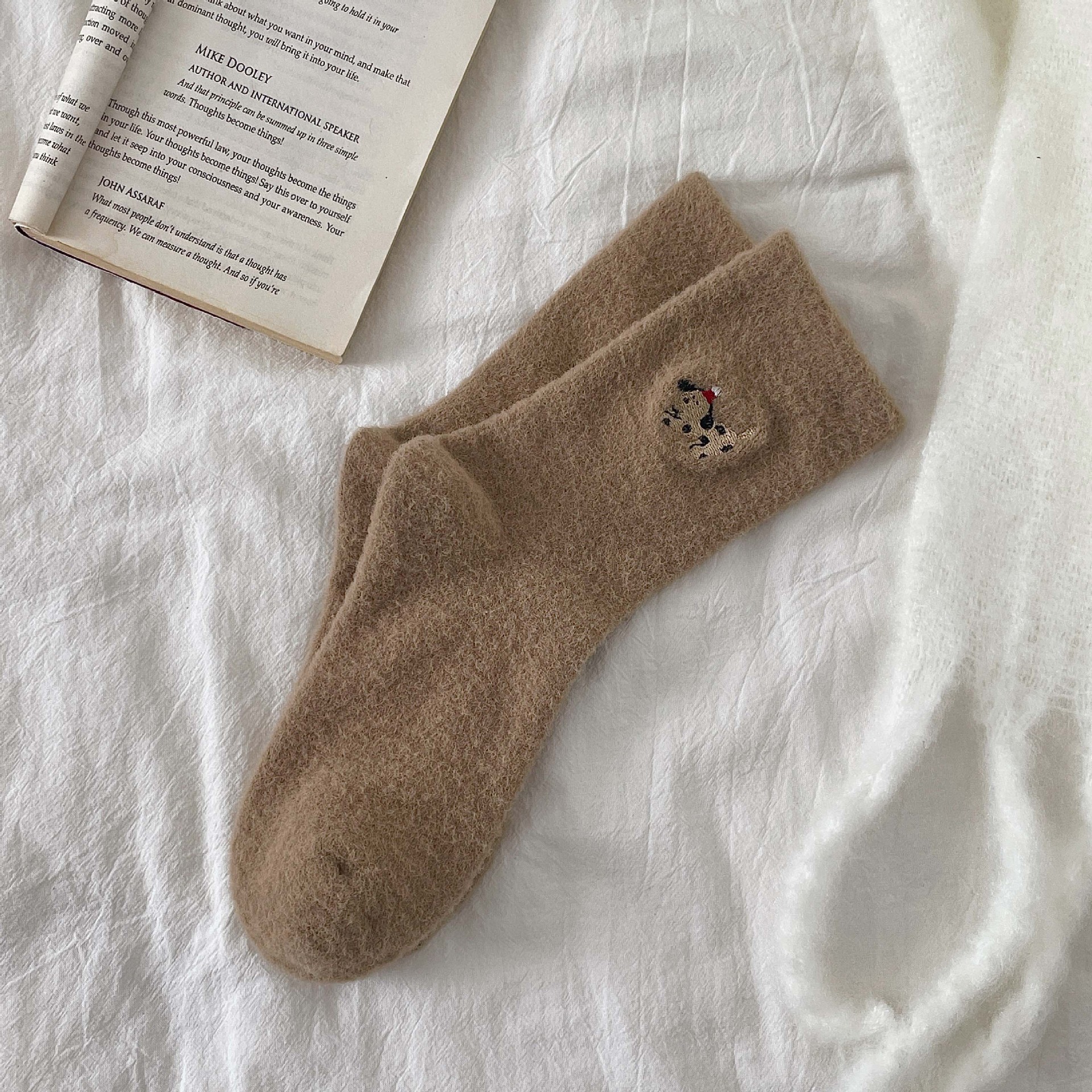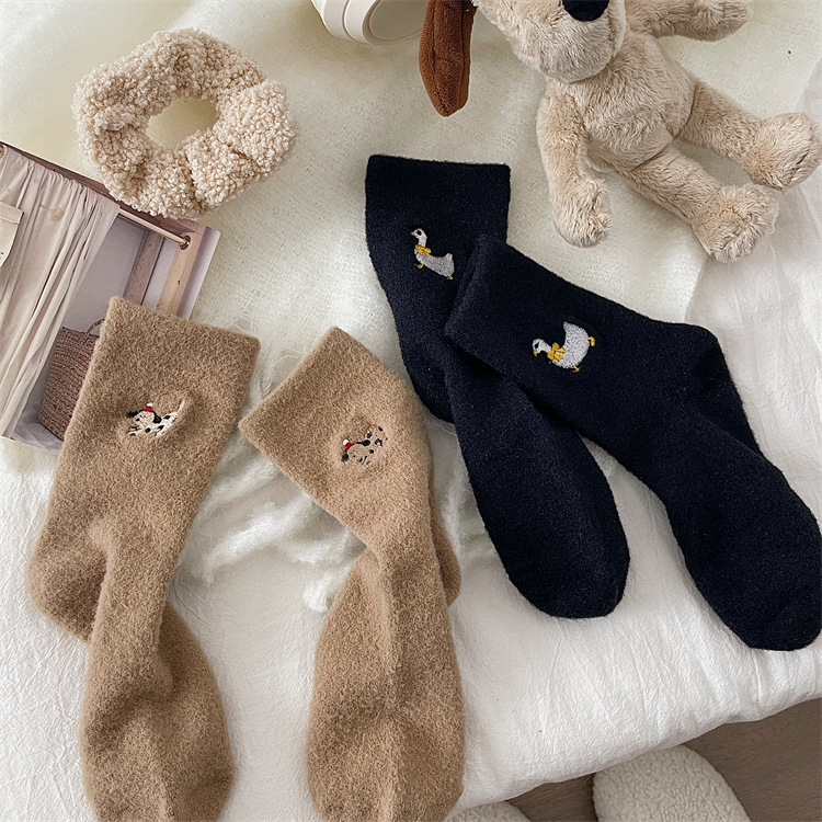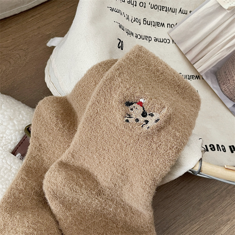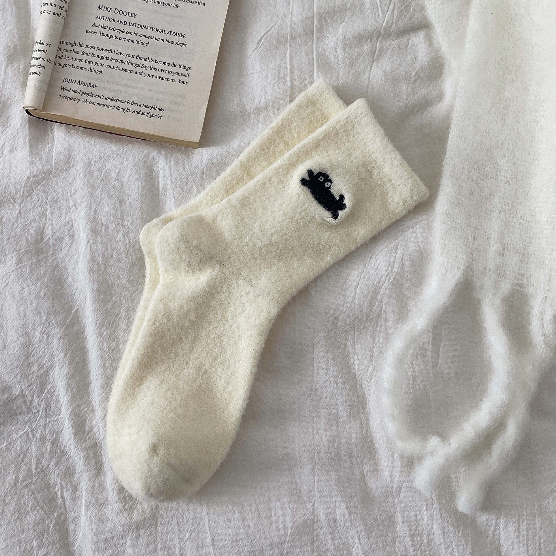 겨울 기모 두꺼운 따뜻한 양말 어린이 귀여운 만화 중간 길이 양말 한국 스타일 호주 벨벳 수면 양말 솔리드 컬러 문 양말