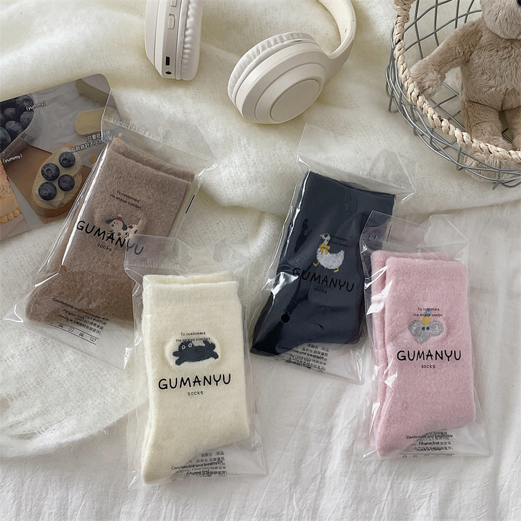 겨울 기모 두꺼운 따뜻한 양말 어린이 귀여운 만화 중간 길이 양말 한국 스타일 호주 벨벳 수면 양말 솔리드 컬러 문 양말스토어 가기