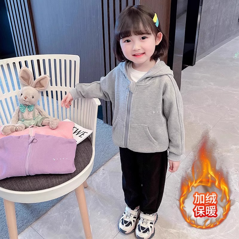 어린이 코트 소녀의 봄과 가을 새로운 어린이 아기 옷 어린 소녀의 재킷 Huzhou Zhili 스웨트 셔츠