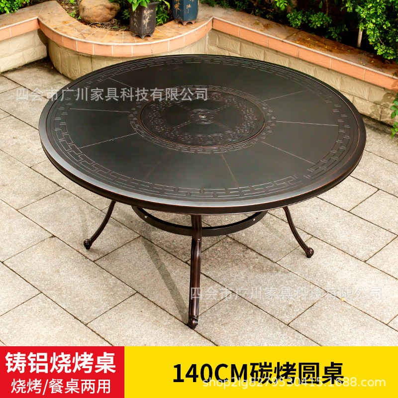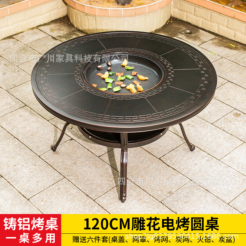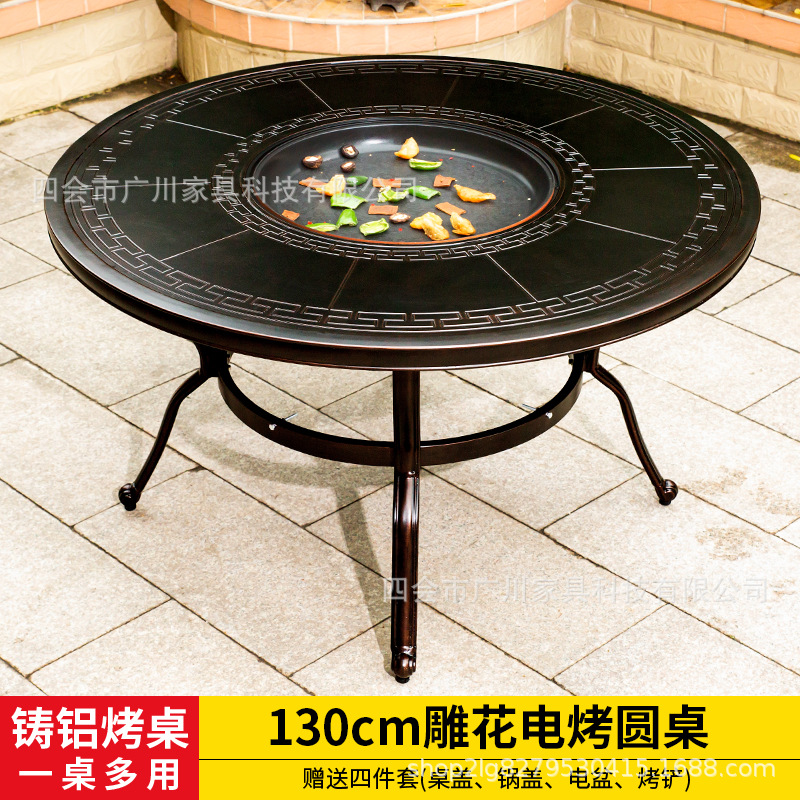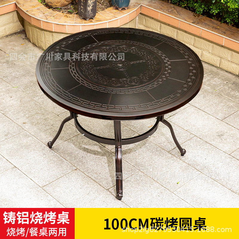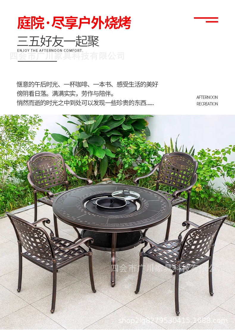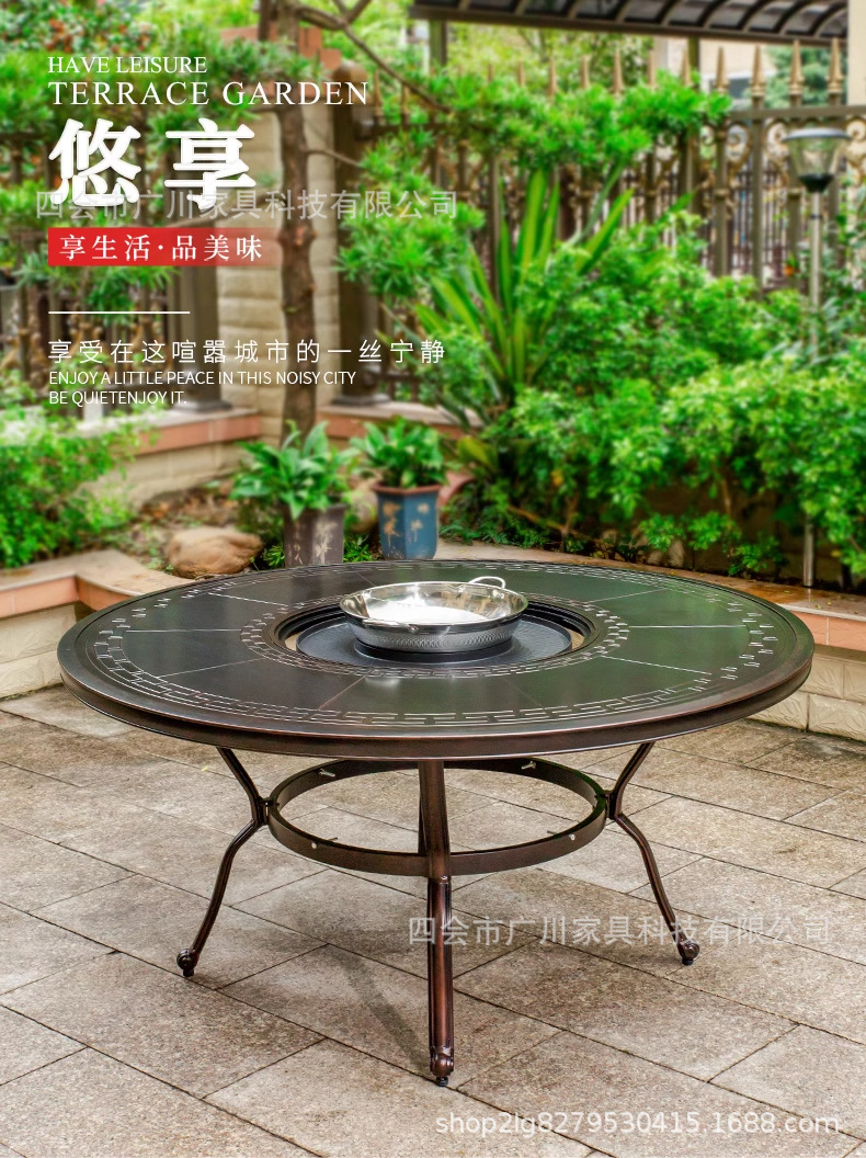 야외 바베큐 캐스트 알루미늄 테이블 및 의자 안뜰 야외 정원 레저 가구 다이닝 테이블 야외 발코니 전기 베이킹 핫 팟 조합스토어 가기