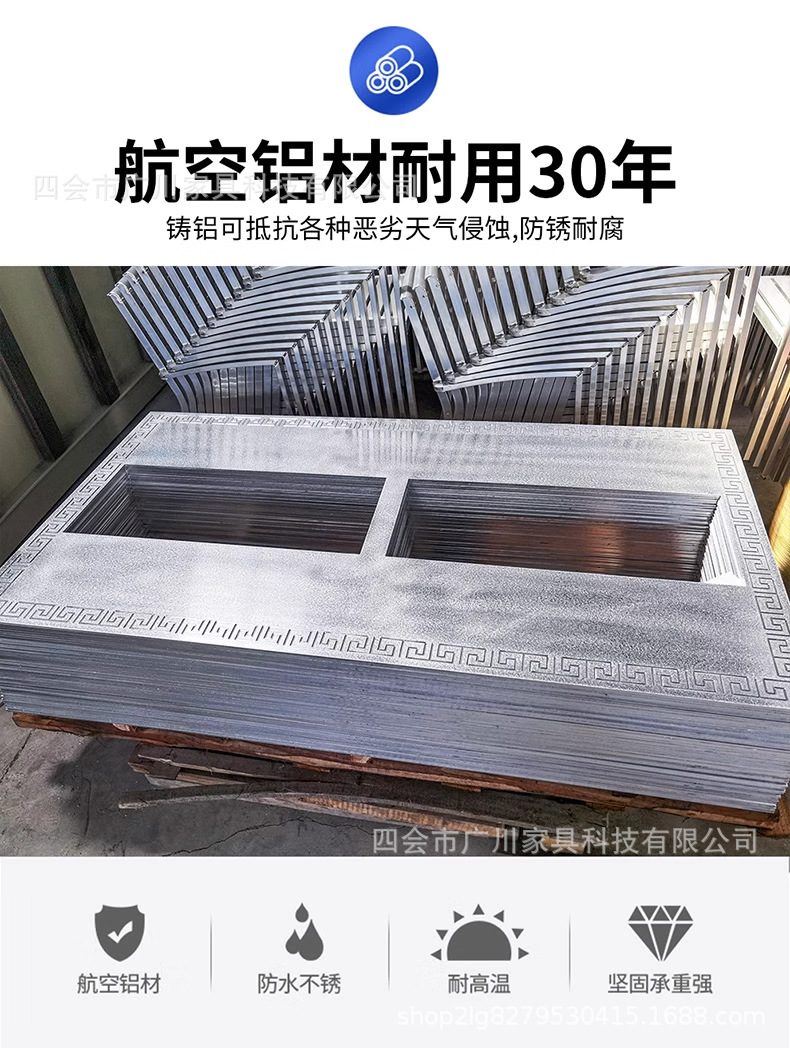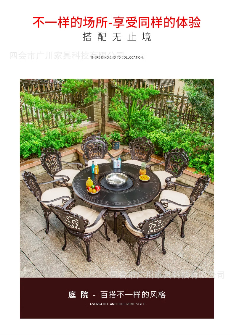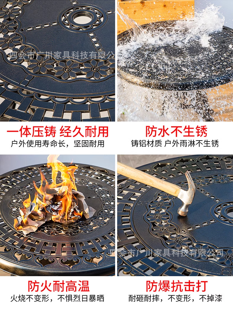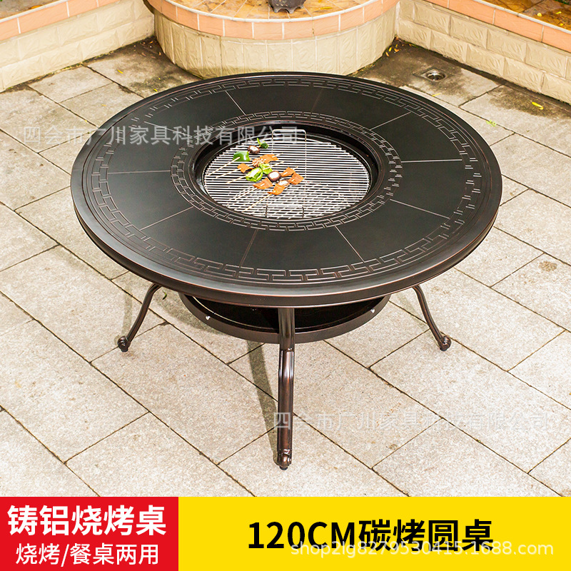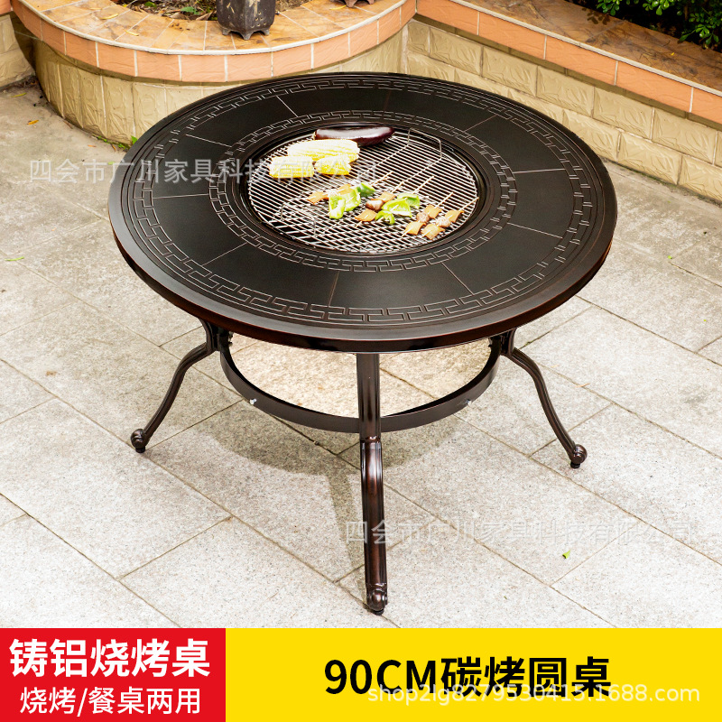 야외 바베큐 캐스트 알루미늄 테이블 및 의자 안뜰 야외 정원 레저 가구 다이닝 테이블 야외 발코니 전기 베이킹 핫 팟 조합스토어 가기