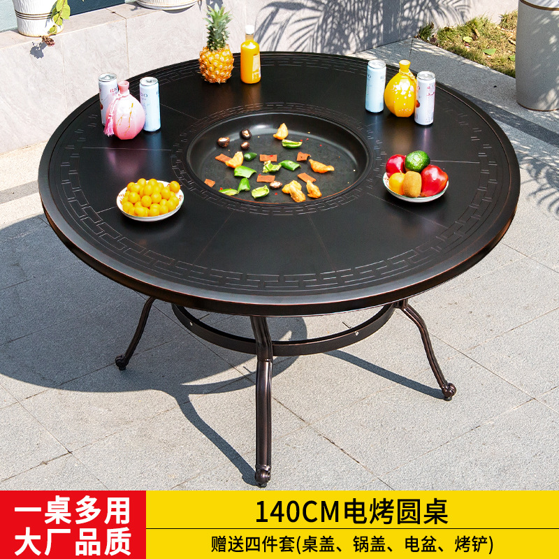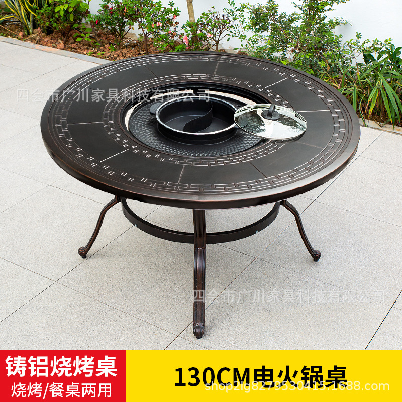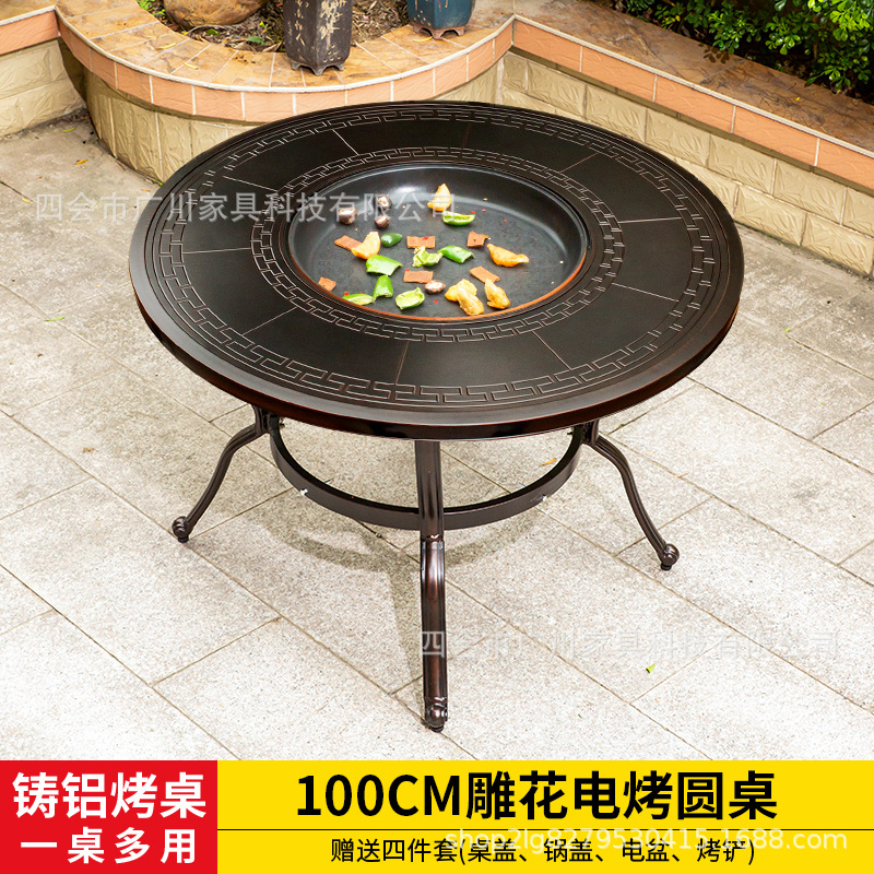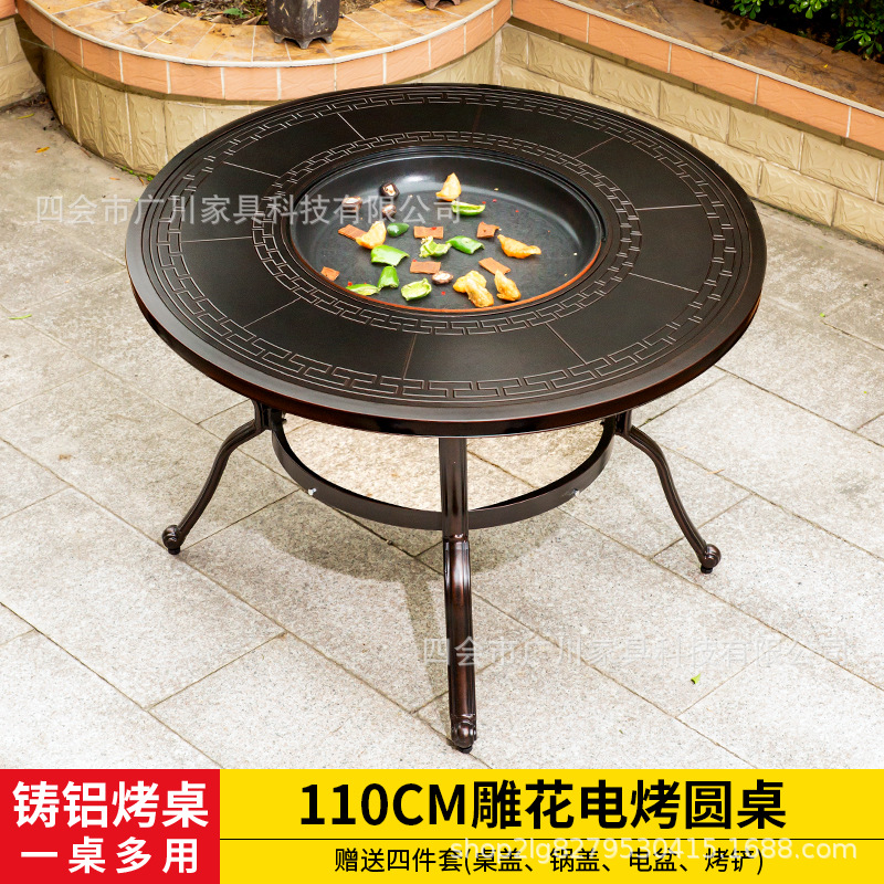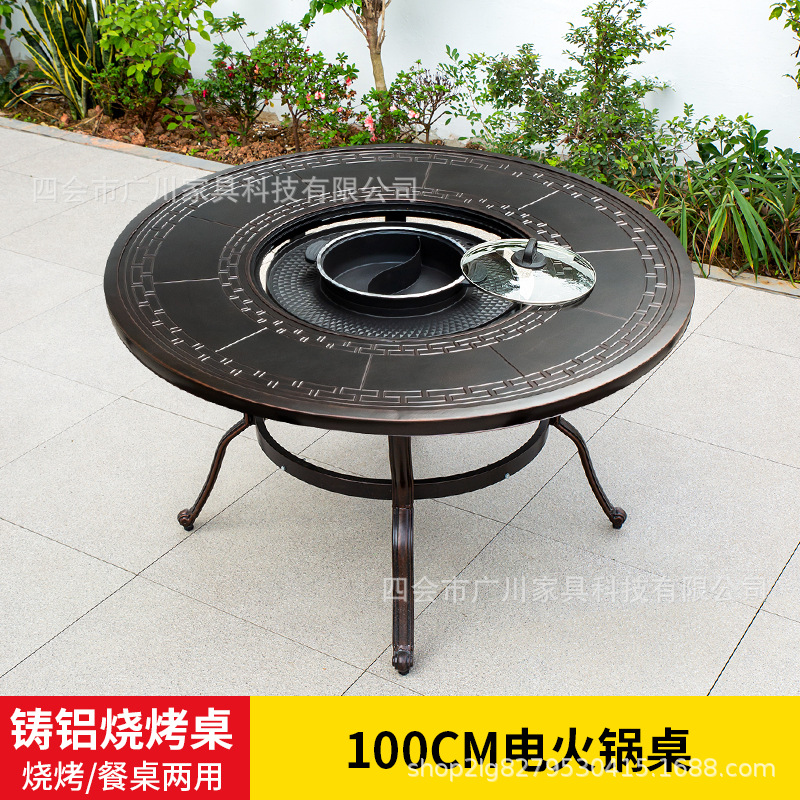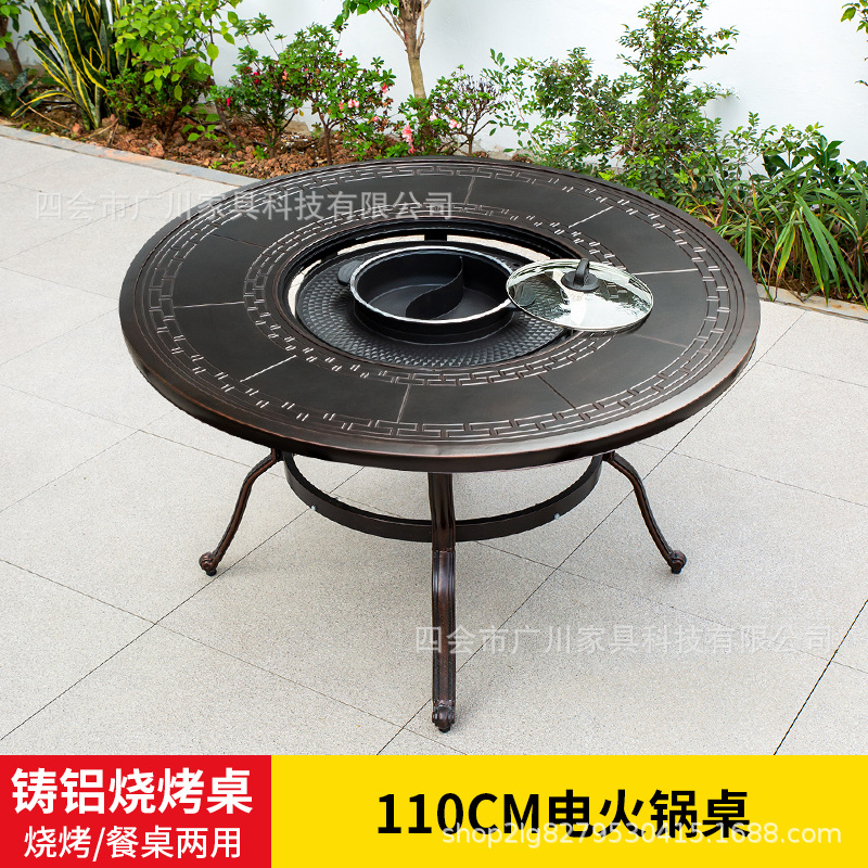 야외 바베큐 캐스트 알루미늄 테이블 및 의자 안뜰 야외 정원 레저 가구 다이닝 테이블 야외 발코니 전기 베이킹 핫 팟 조합