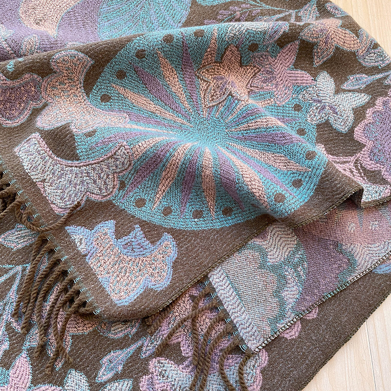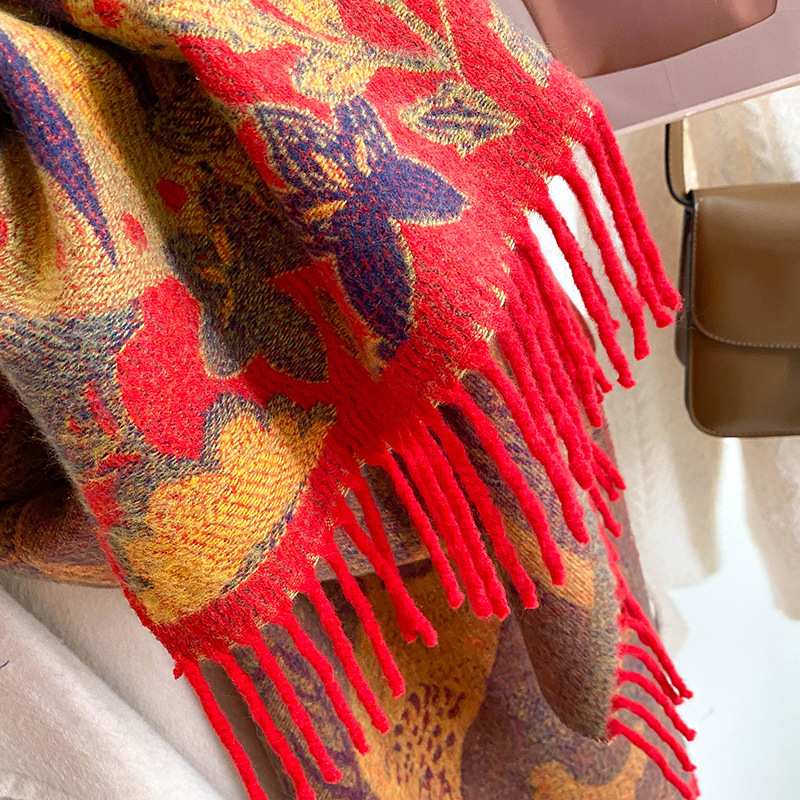 관광 민족 스타일 술 목도리 여성의 가을과 겨울 국가 스타일의 꽃과 새 코어 회전 원사 스카프가 두껍게 따뜻한 모조 캐시미어 스카프