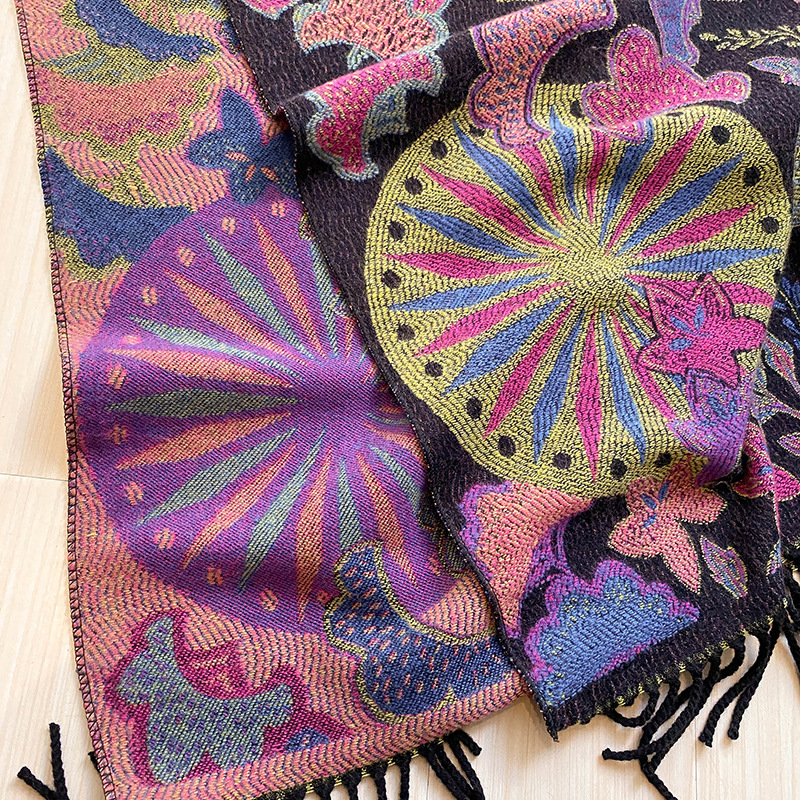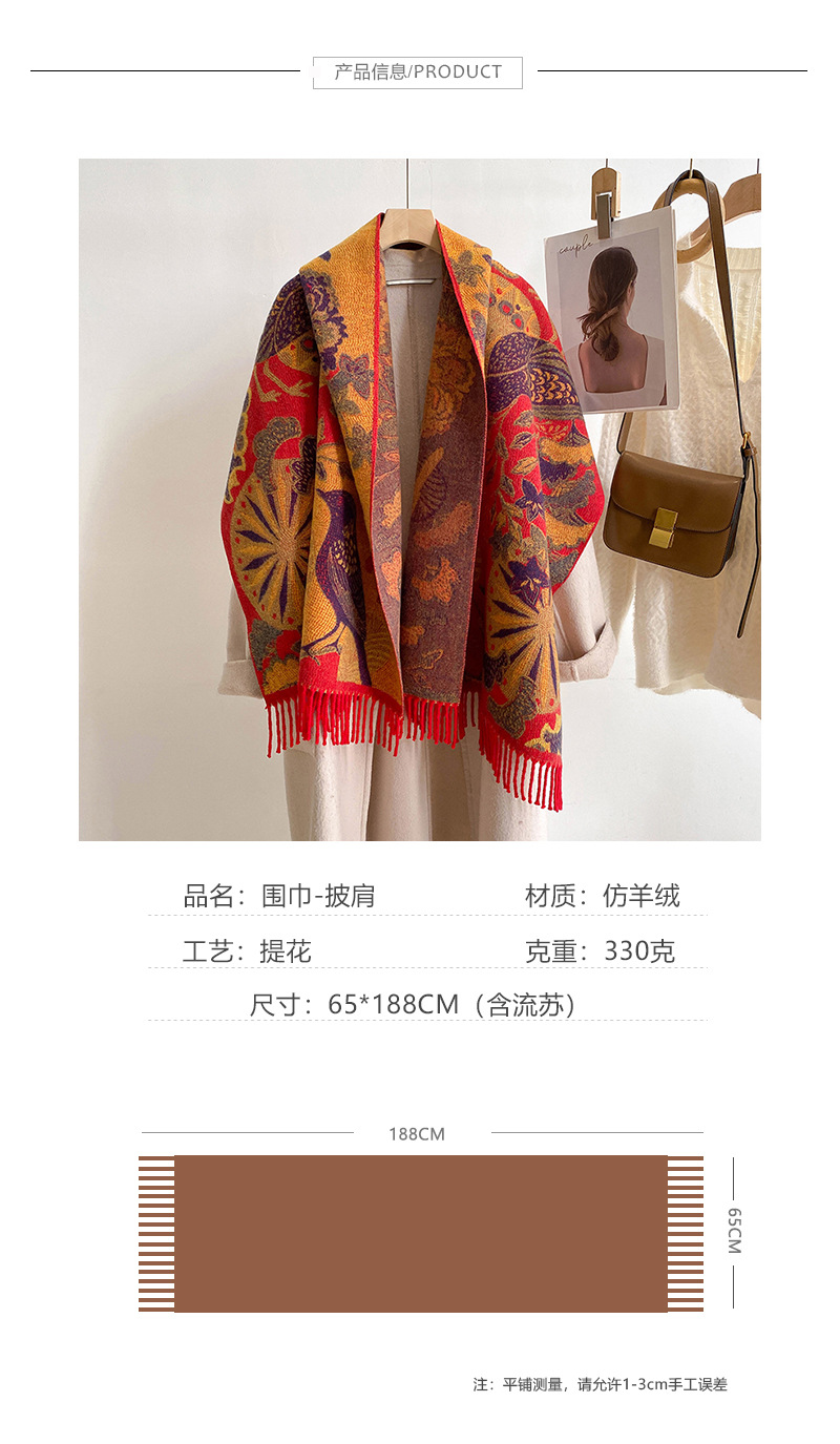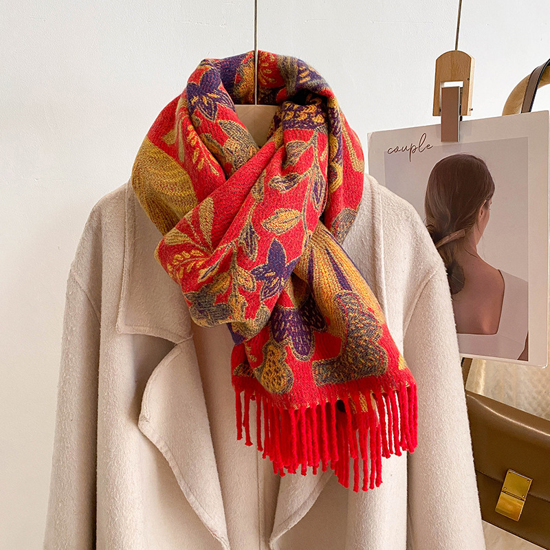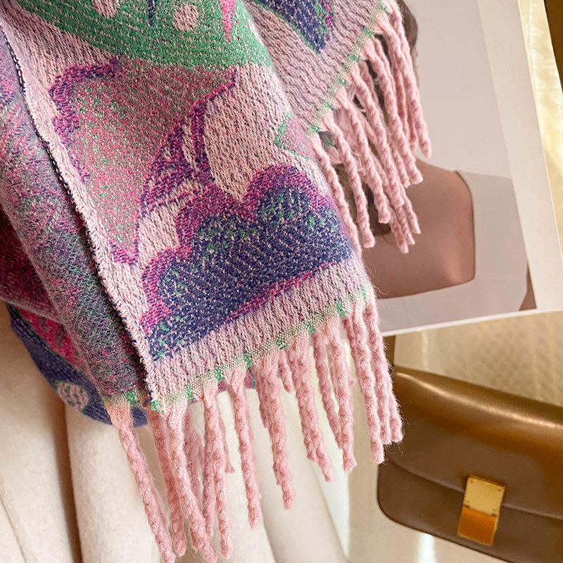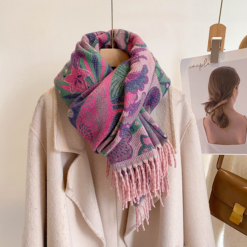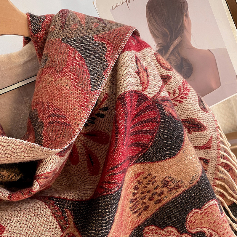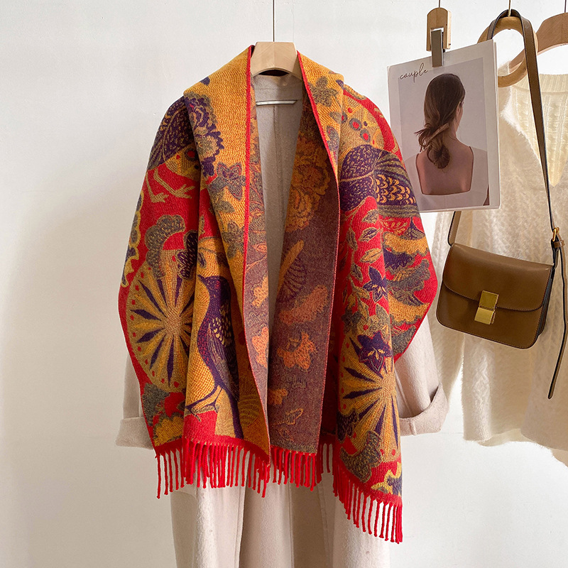 관광 민족 스타일 술 목도리 여성의 가을과 겨울 국가 스타일의 꽃과 새 코어 회전 원사 스카프가 두껍게 따뜻한 모조 캐시미어 스카프스토어 가기