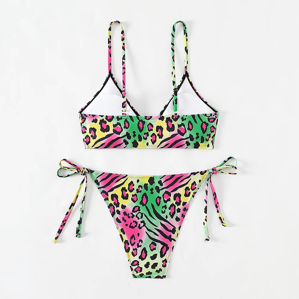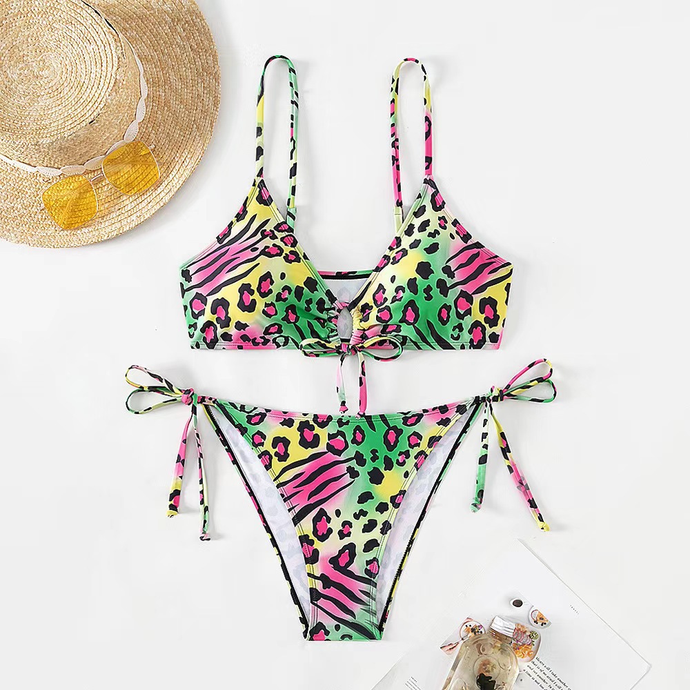 유럽과 미국의 새로운 수영복 여성 섹시한 베이직 비키니 레오파드 무늬 레이스 업 수영복 여성 대외 무역 수영복 아마존 핫 스타일