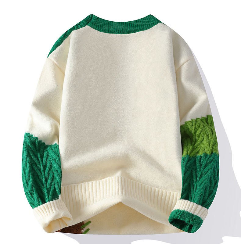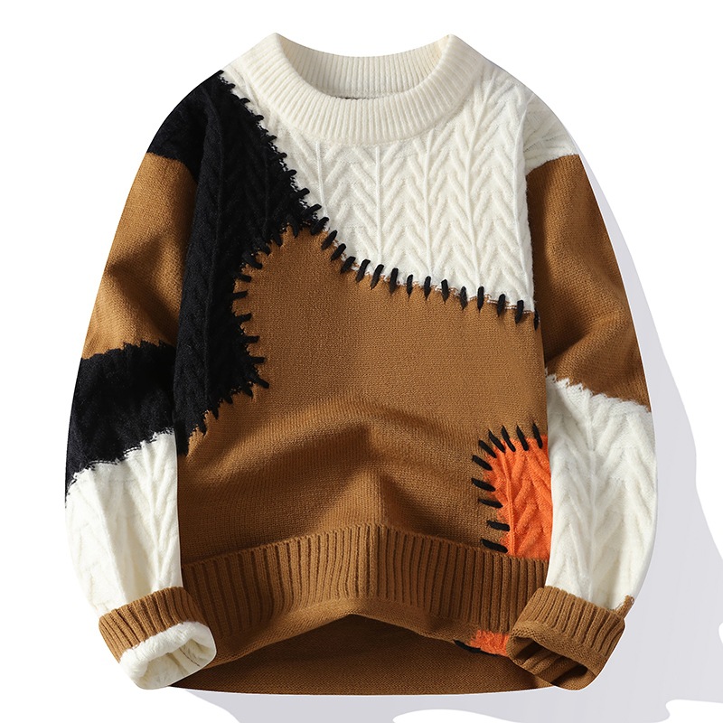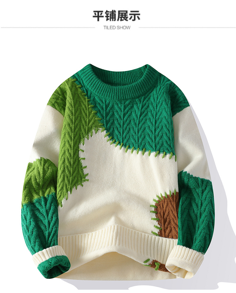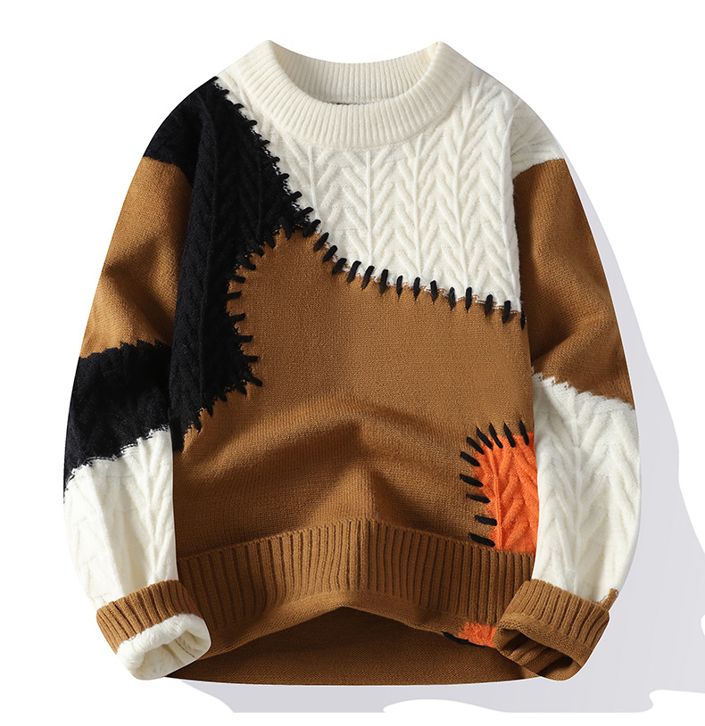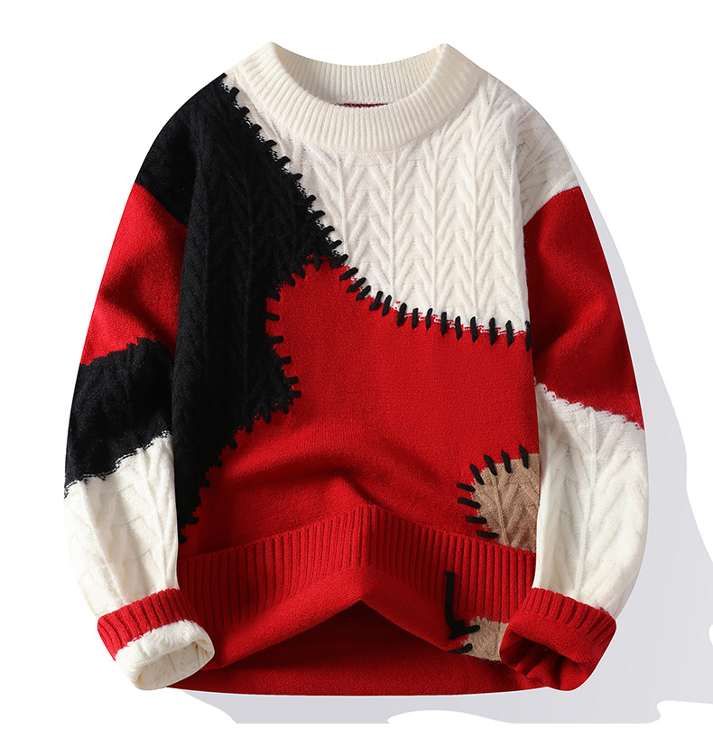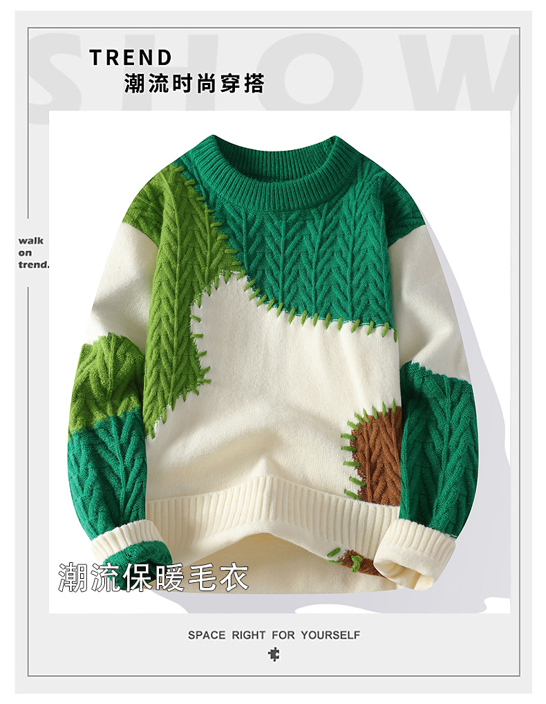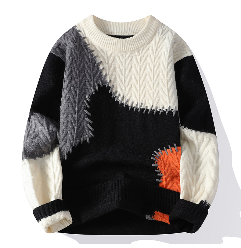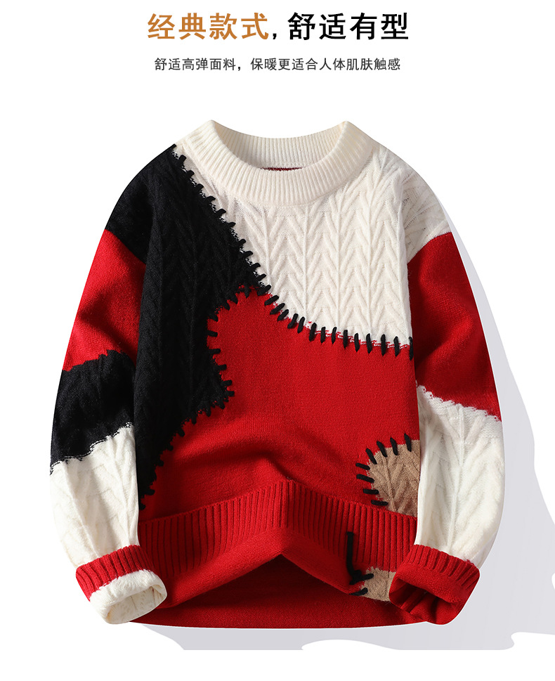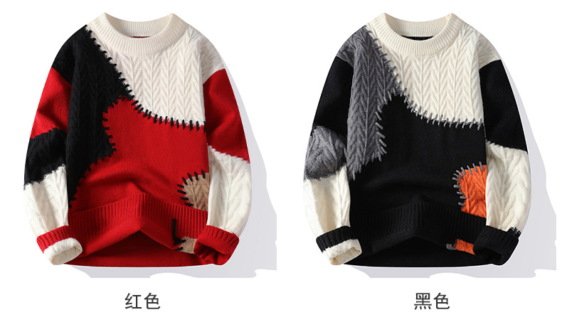 남성용 대비색 스웨터 디자인 2024 겨울 스플 라이스 따뜻한 스웨터 루즈 캐주얼 청소년 스웨터