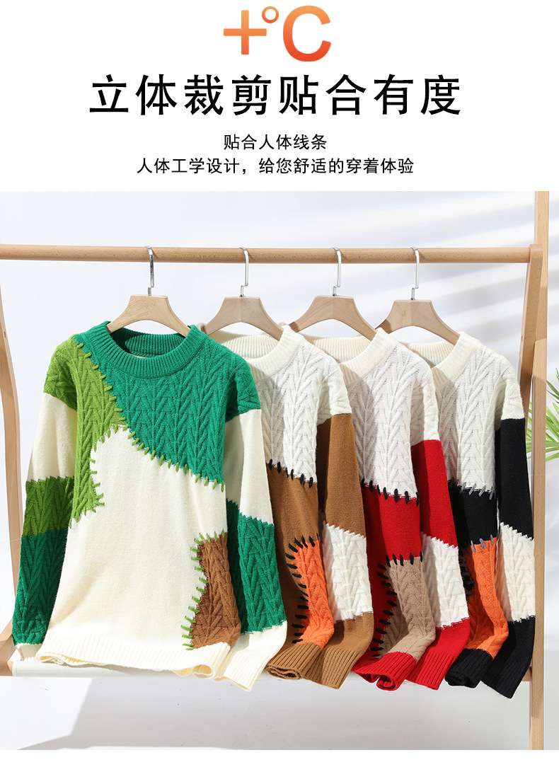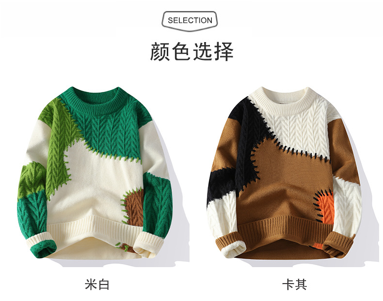 남성용 대비색 스웨터 디자인 2024 겨울 스플 라이스 따뜻한 스웨터 루즈 캐주얼 청소년 스웨터스토어 가기
