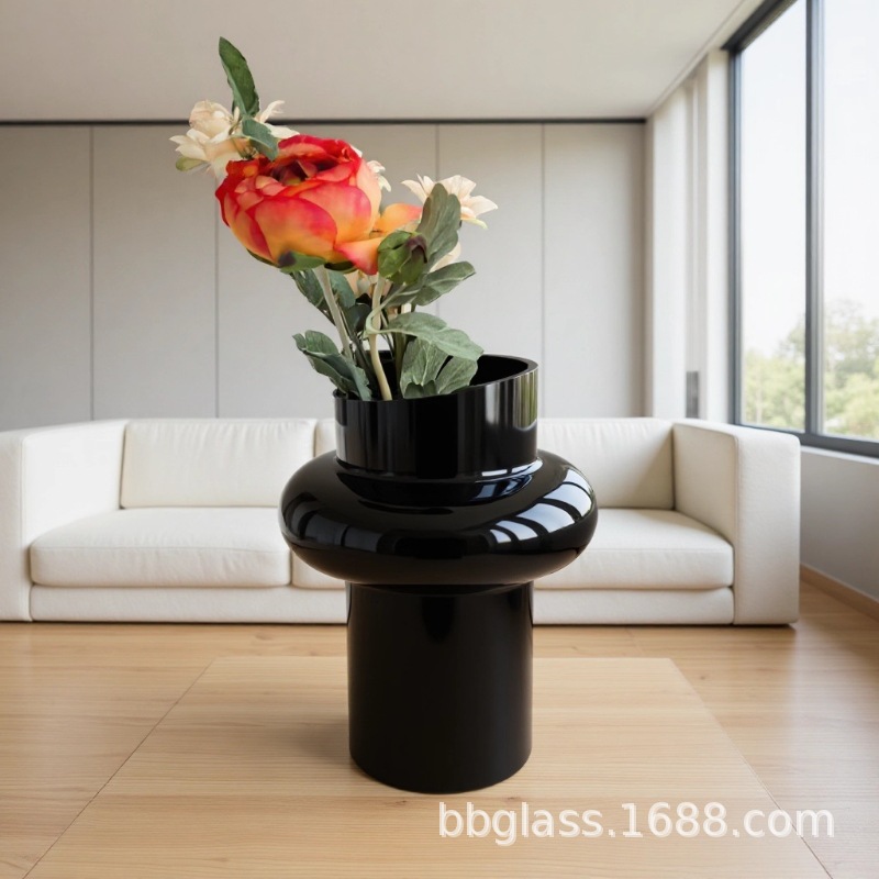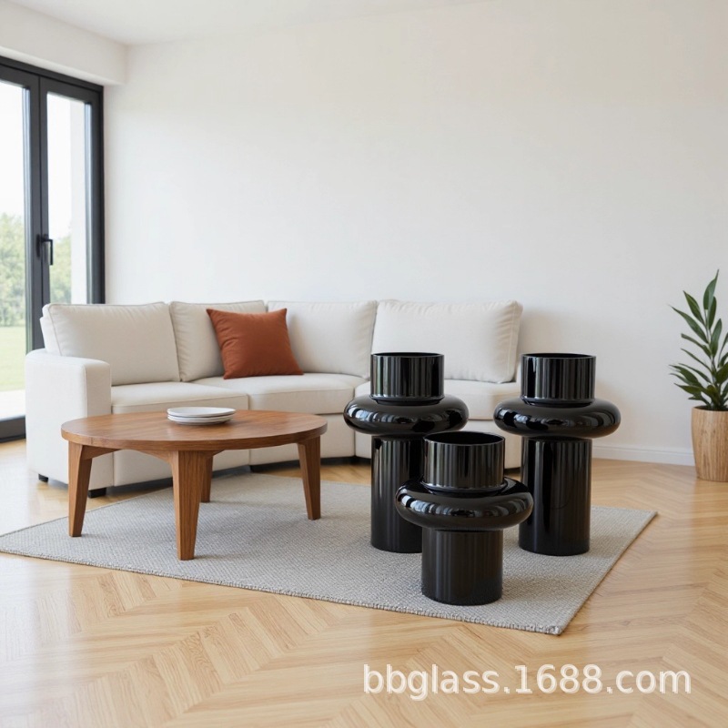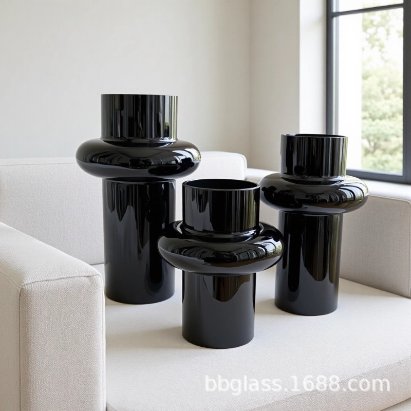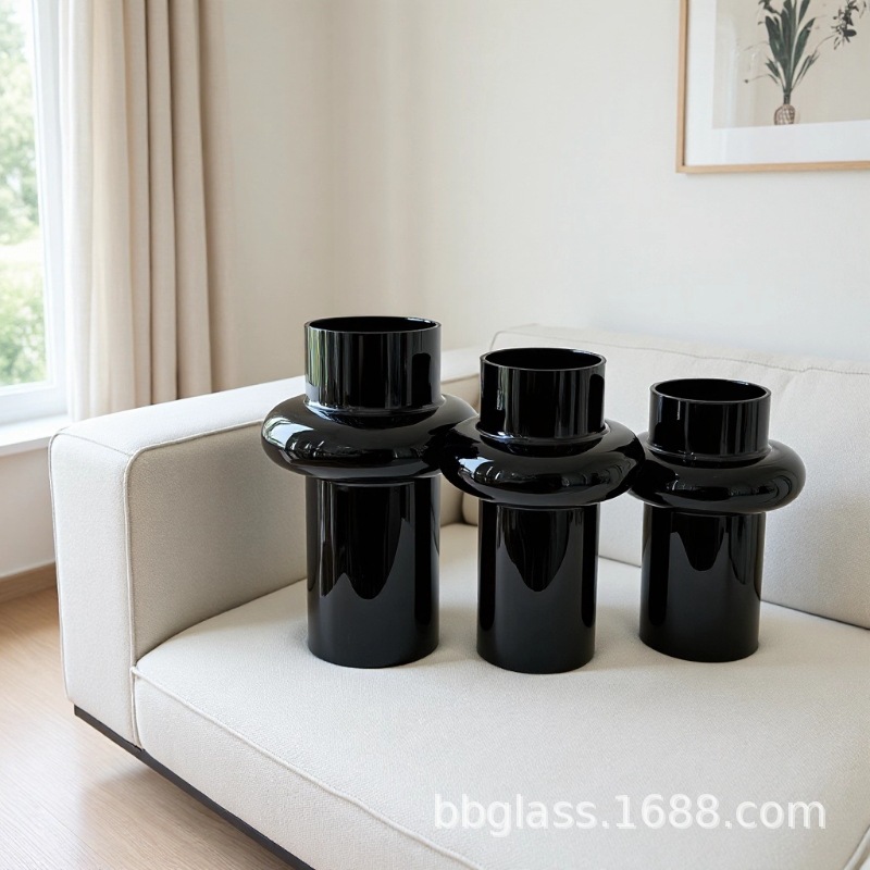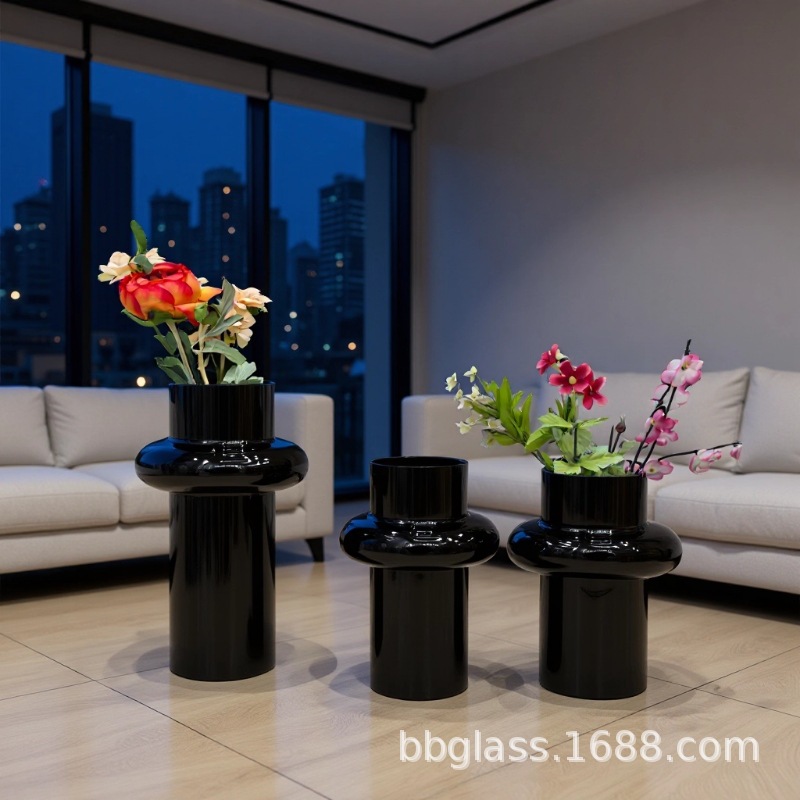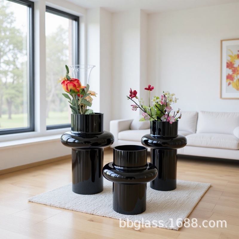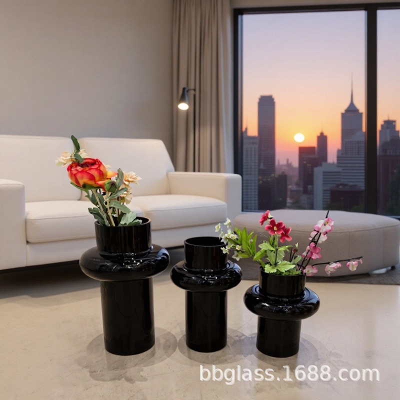 BBGLASS Baobei 유리 블랙 유리 꽃병 릴리 꽃병 장식품 거실 꽃 배열 유리 프리미엄 감각스토어 가기