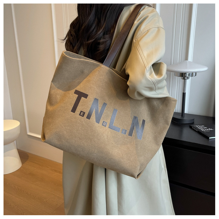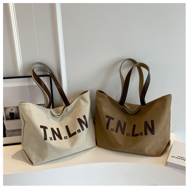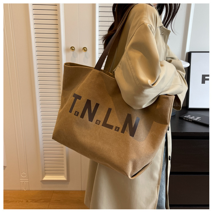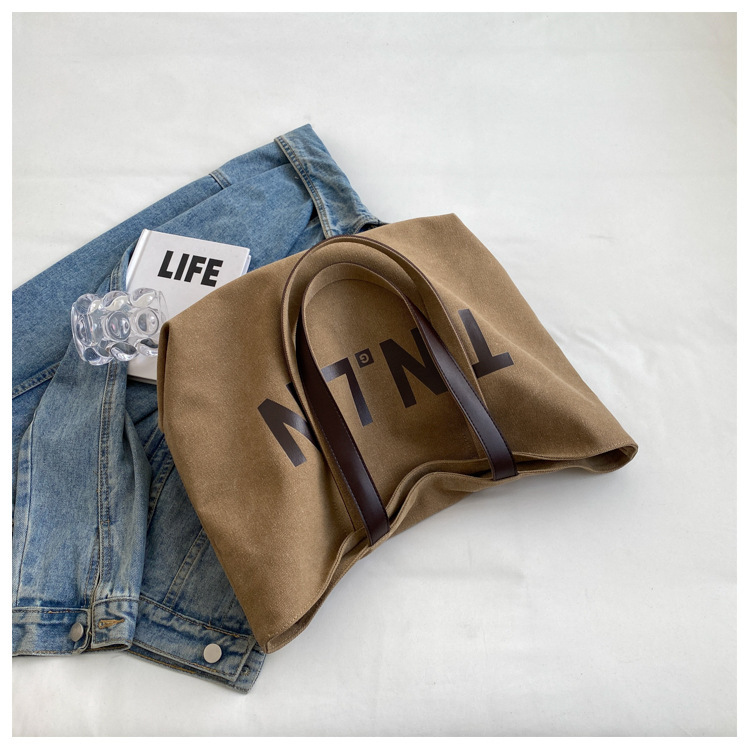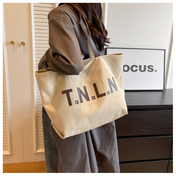 캔버스 가방, 고급 감각 틈새 예술적 어깨 가방 여성 대용량 가을 및 겨울 올 매치 학생 통근 토트 백