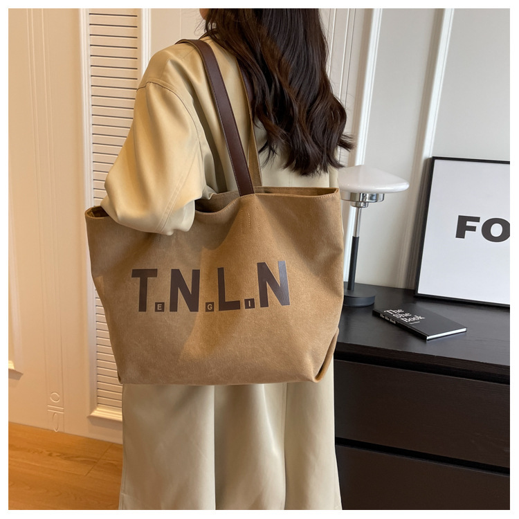 캔버스 가방, 고급 감각 틈새 예술적 어깨 가방 여성 대용량 가을 및 겨울 올 매치 학생 통근 토트 백스토어 가기